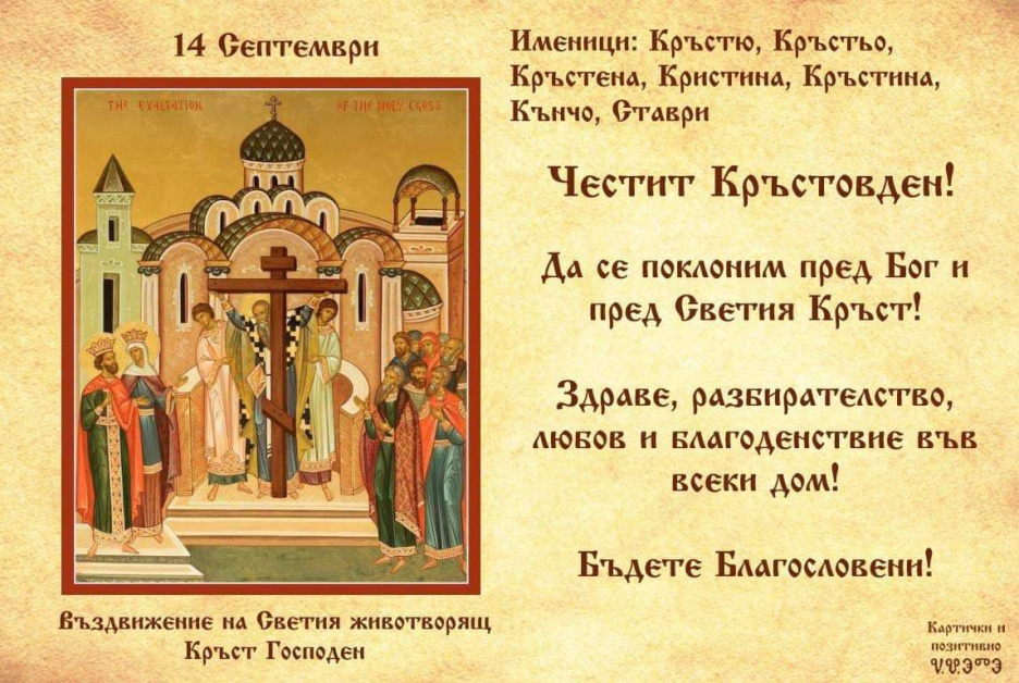 Имен ден празнуват Кръстьо, Кръстина, Кръстил, Кръстила, Кръстилена, Кръстена, Кръстан, Кръстана.
