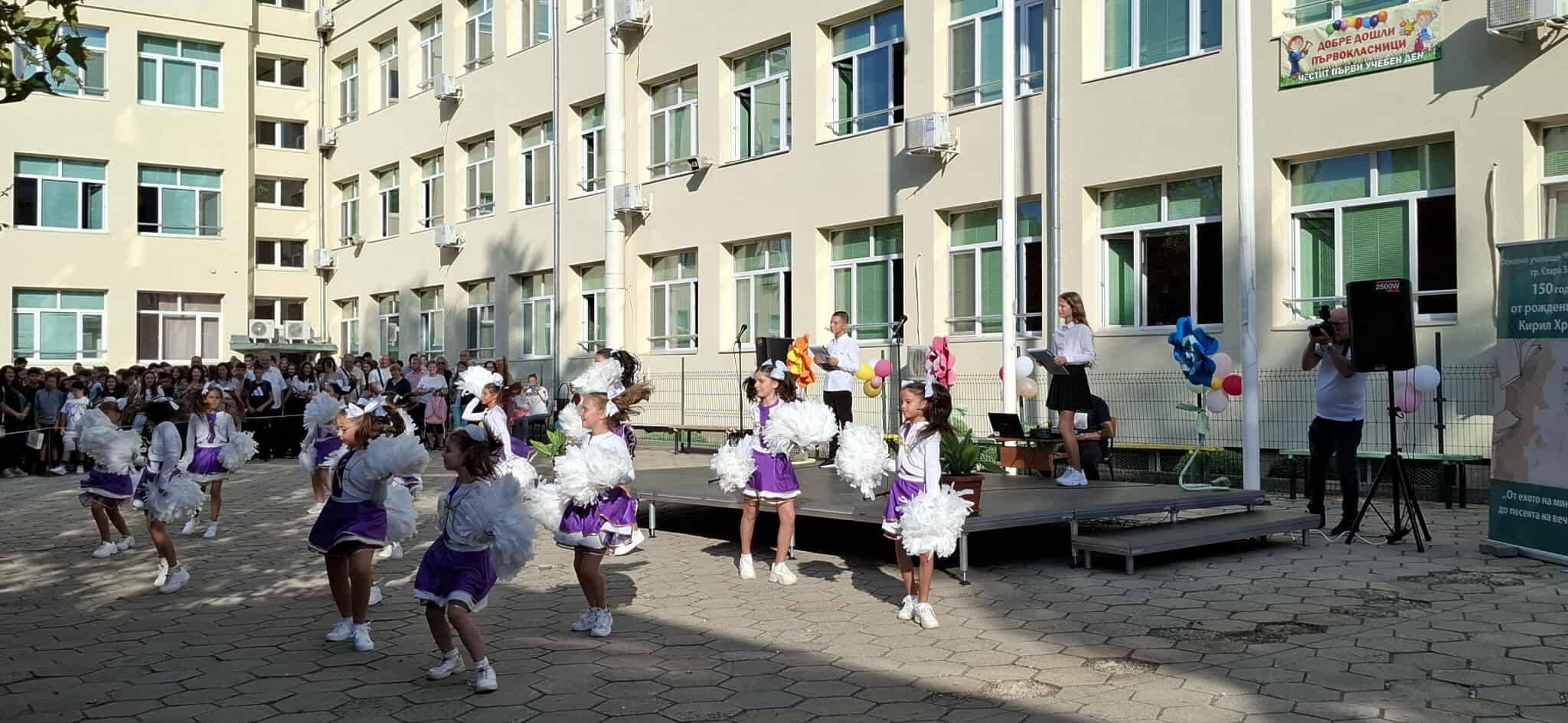 Вълнуващо тържество сложи началото на новата учебна 2025/2026 г. в Основно училище „Кирил Христов”. Знаменна група внесе знамето на училището, бяха издигнати флаговете на България и на Европейския съюз под звуците на двата химна. Прозвуча и химнът на училището, носещо името на големия българския поет. Своето приветствие към всички присъстващи отправи Катя Георгиева, директор на ОУ”Кирил Христов”. Нейното послание бе специално към първокласниците и седмокласниците от училището, към родителите, които са опора и към учителите, заради които „Кирил Христов” е предпочитано училище в града.
