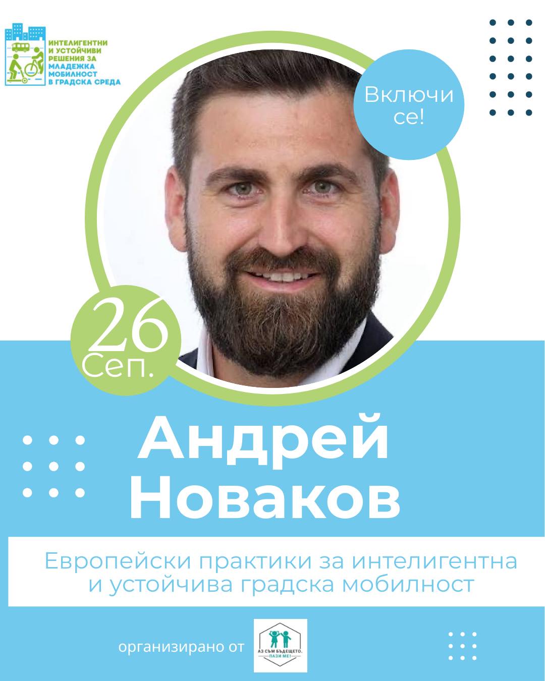„Бъдете част от дискусиите за бъдещето на градската мобилност и възможностите, които европейските програми отварят пред младите хора!“, апелират организаторите.