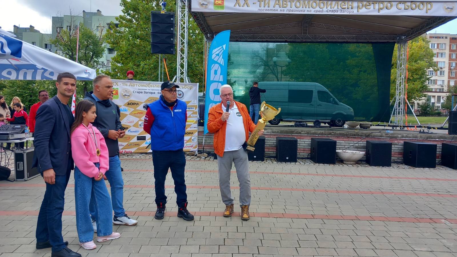 „От свое име и от името на клуба благодаря на всички, които повярваха в нас и ни уважиха с присъствието си! Благодаря на кмета на Община Стара Загора г-н Живко Тодоров, че предостави прекрасния ни парк „Артилерийски“, обърна се към публиката Гено Иванов, председател на Старозагорския автомобилен клуб „Ретро“, основан през 1990 г. Той обяви първо голямата награда – Купата на кмета на Община Стара Загора г-н Живко Тодоров. Негов представител на събора бе Николай Диков, секретар на Община Стара Загора, придружен от Петко Крумов, началник на отдел „Спортни дейности“.