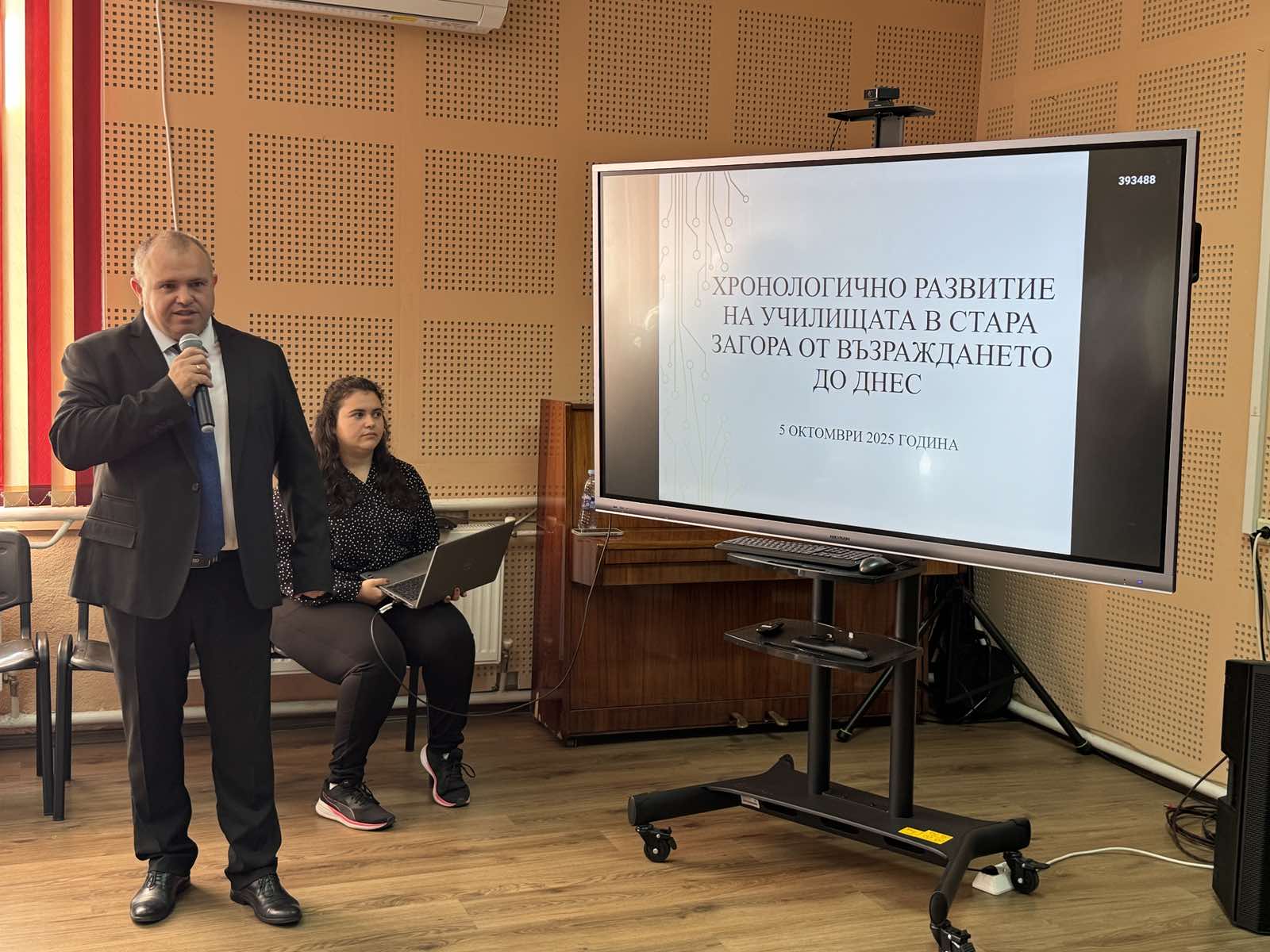 Вълнуваща презентация за историята на старозагорските училища представи Динко Цвятков, директор на СУ „Иван Вазов“.