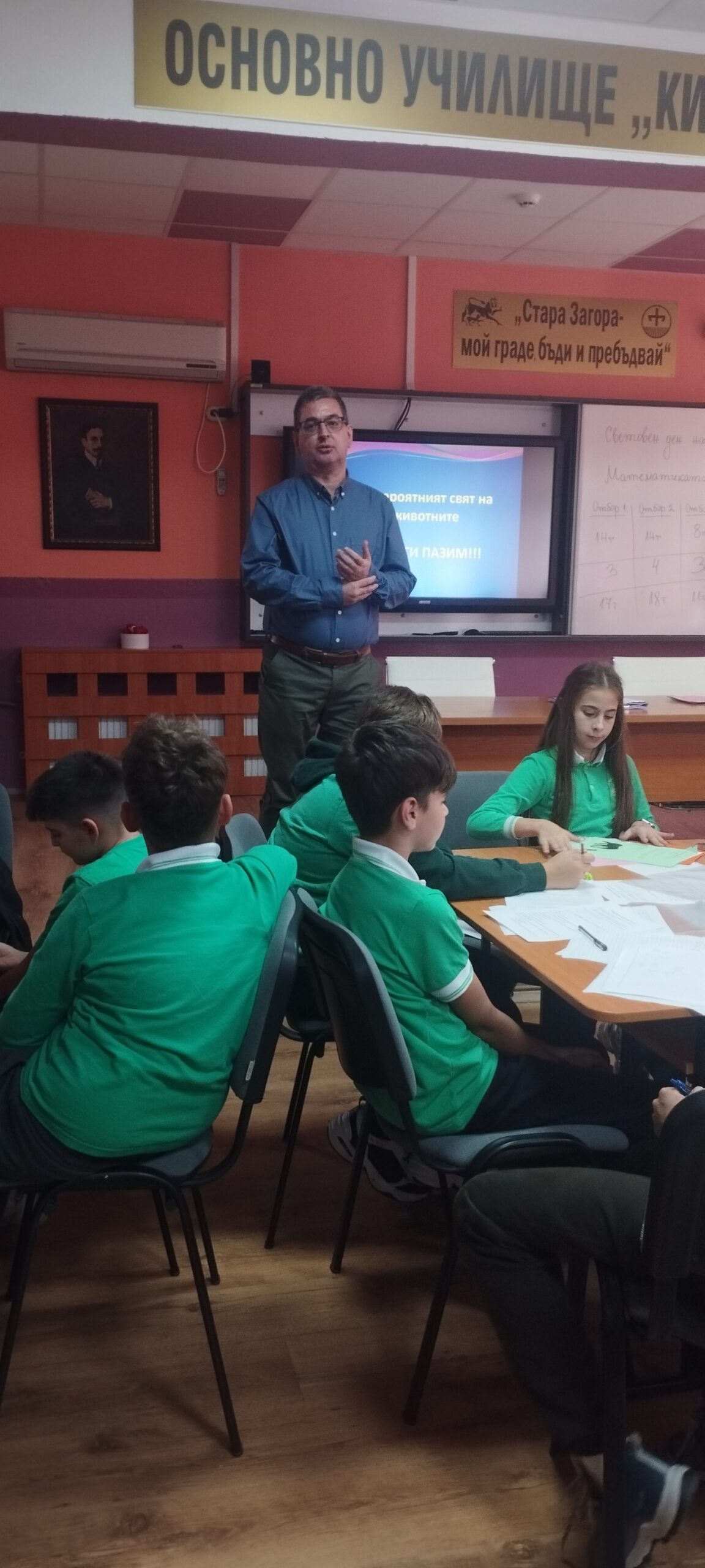 На 6 октомври в ОУ „Кирил Христов“ – Стара Загора се проведе открит интегриран урок, посветен на животните и тяхната роля в природата. Урокът бе подготвен от Екатерина Йовчева – старши учител по математика, и Венета Кирковска – старши учител по биология и здравно образование.