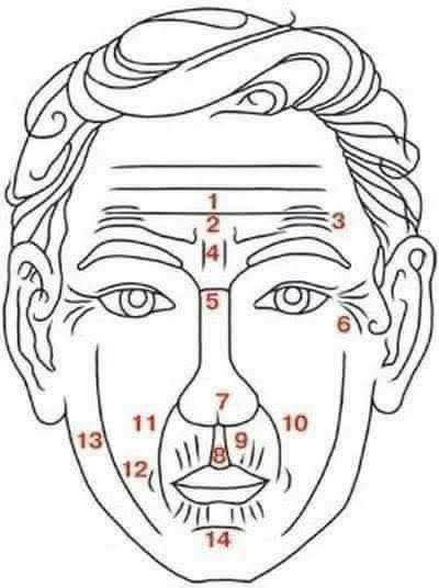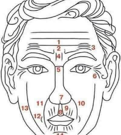 8. БРЪЧКИТЕ ЖИВОТНИ СИЛА. Не е точно бръчка, а гънка, малко канал. Тук се отразява състоянието на почти всички храносмилателни органи, както и на бедрата и задните части (стабилност на тялото, движение напред във всички посоки). Добре изразената гънка означава способност бързо да се възстановяват силата. Дълъг и дълбок канал: дълголетие.