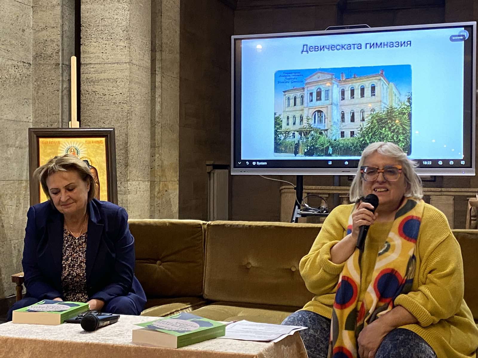 Проф. Василева представи и авторите, които присъстваха на гостуването на Националната библиотека: Проф. д-р Светла Димитрова, директор на Регионалния етнографски музей на открито „Етър“ Габрово, автор на множество монографии, книги, статии, един от най-активните съвременните изследователи на богатото културно наследство на Стара Загора. Снежана Маринова – вторият автор на сборника, е известен библиотечен деятел, един от най-добрите съвременни краеведи и колекционери на картички и снимки.