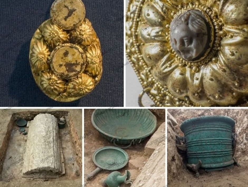 Специалистите са установили, че погребението е извършено по ритуала кремация на място, като тялото е било положено върху специално дървено ложе, в зидана тухлена гробна камера, покрита с тухлен свод. Сред находките се открояват масивни златни обеци, полусферични златни апликации, открити в областта на главата, златна аграфа-брошка с релефно женско изображение. Тя е изключителна по своето изящество, без аналог у нас. Подобен накит е познат от погребението на Креперия Трифена в Рим, което говори за високия социален статус на погребаната, отбелязват от Общината.