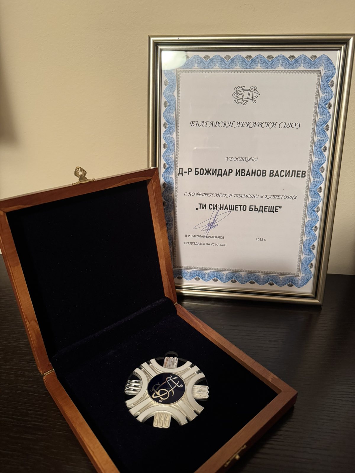 Младият лекар от отделението по „Акушерство и гинекология“ на Университетска болница „Тракия“ д-р Божидар Василев беше отличен с награда „Лекар на годината“ в категория „Ти си нашето бъдеще“ на Българския лекарски съюз. Отличието беше връчено на д-р Василев на официална церемония в София, на която присъства и другият награден лекар от УМБАЛ „Тракия“ – началникът на Кардиологично отделение д-р Михаил Михалев, който спечели голямата награда „Лекар на годината“ за област Стара Загора, присъдена му от Районната колегия на БЛС.