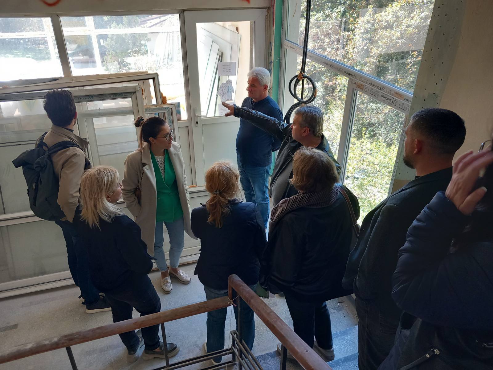 Заедно със зам.-кмета с ресор „Общинска собственост, здравеопазване и социални дейности“ Павлина Делчева днес на посещение в Дома за стари хора бяха още експерти и началници на отдели от всички структури на Община Стара Загора, ангажирани с обновяването и модернизирането на базата. Директорът на дома Илия Александров и строителният техник на обекта Георги Георгиев разведоха експертите и разясниха пред тях подробно докъде са стигнали дейностите.