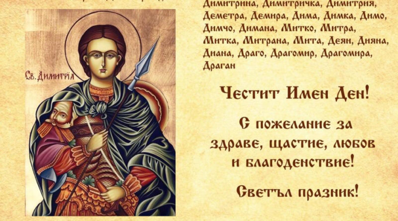 Култът на св. Димитрий рано бил пренесен в Тракия и Македония. Българи и гърци започнали разпалено да си оспорват „покровителството на небесния стратег св. Димитрий от Солун“. Българите казвали, че той бил от славянски произход.