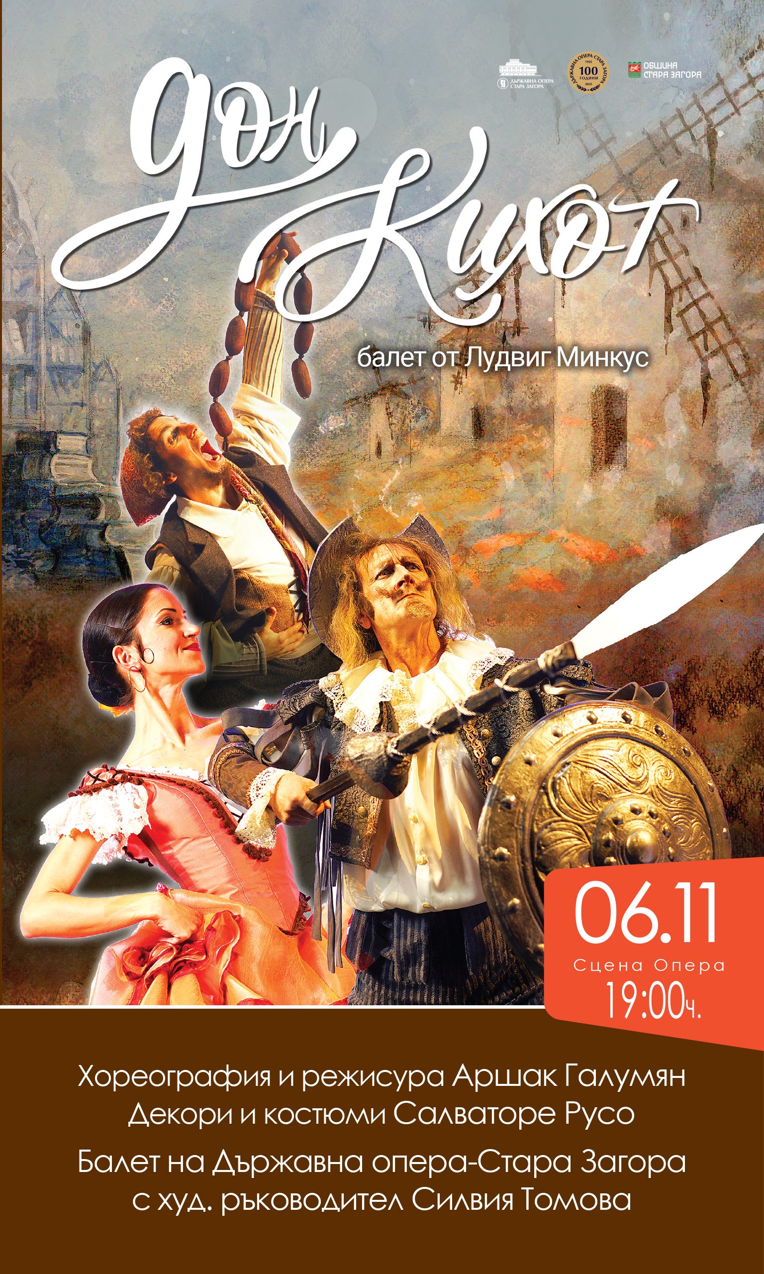 Това е пищен спектакъл, създаден в духа на голямата балетна традиция, носещ в себе си пулса на новото време. Балетът “Дон Кихот” е сред върховите постижения на класическия танц. В постановката на Старозагорската опера Аршак Галумян – тогава премиер солист на Щатсбалет-Берлин, внася хореографска свежест и оригинален режисьорски прочит, като обогатява и визуалното възприятие с много театрални, дори кинематографиччни изразни средства. Художник на декора и великолепните костюми е италианецът Салваторе Русо.