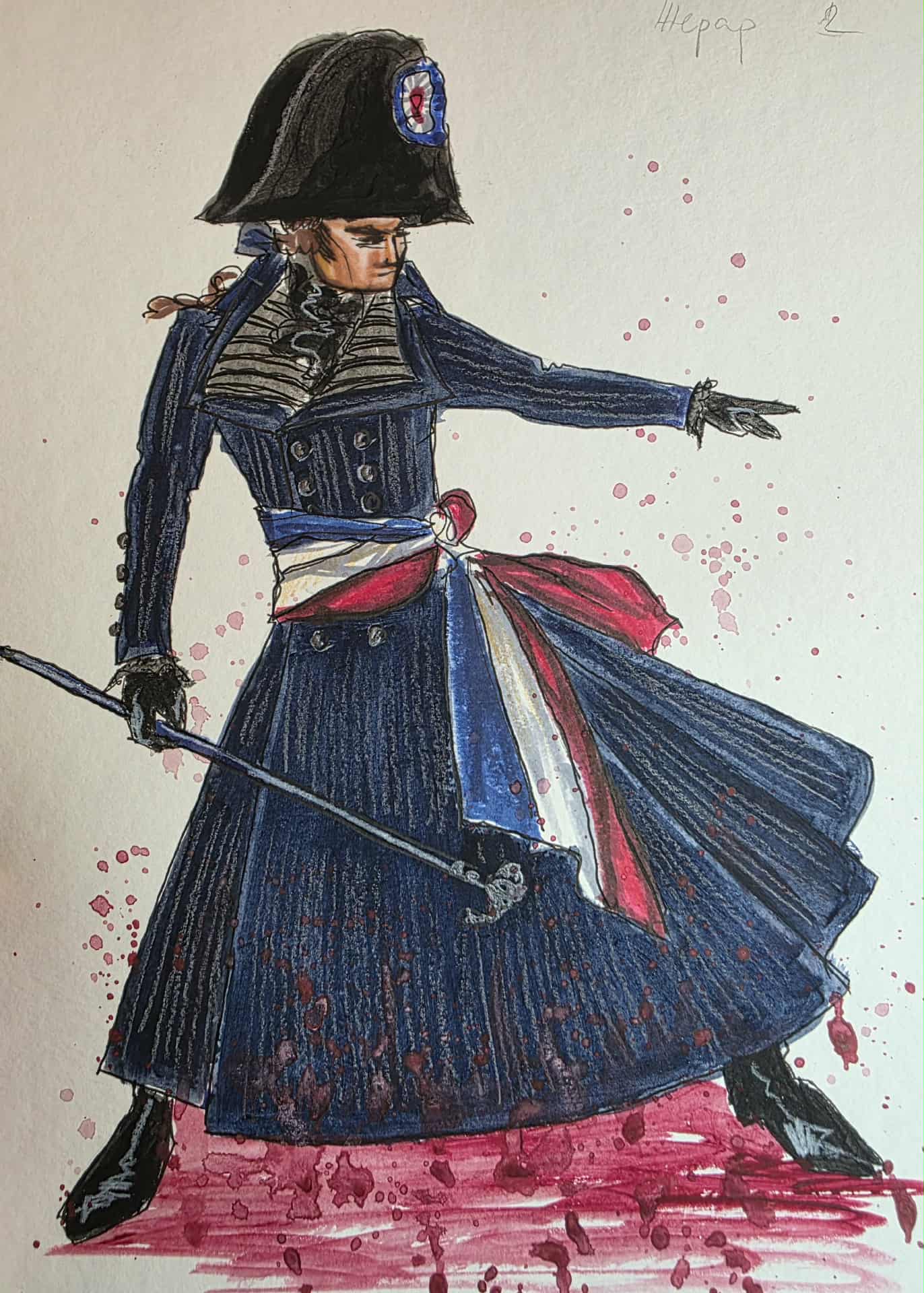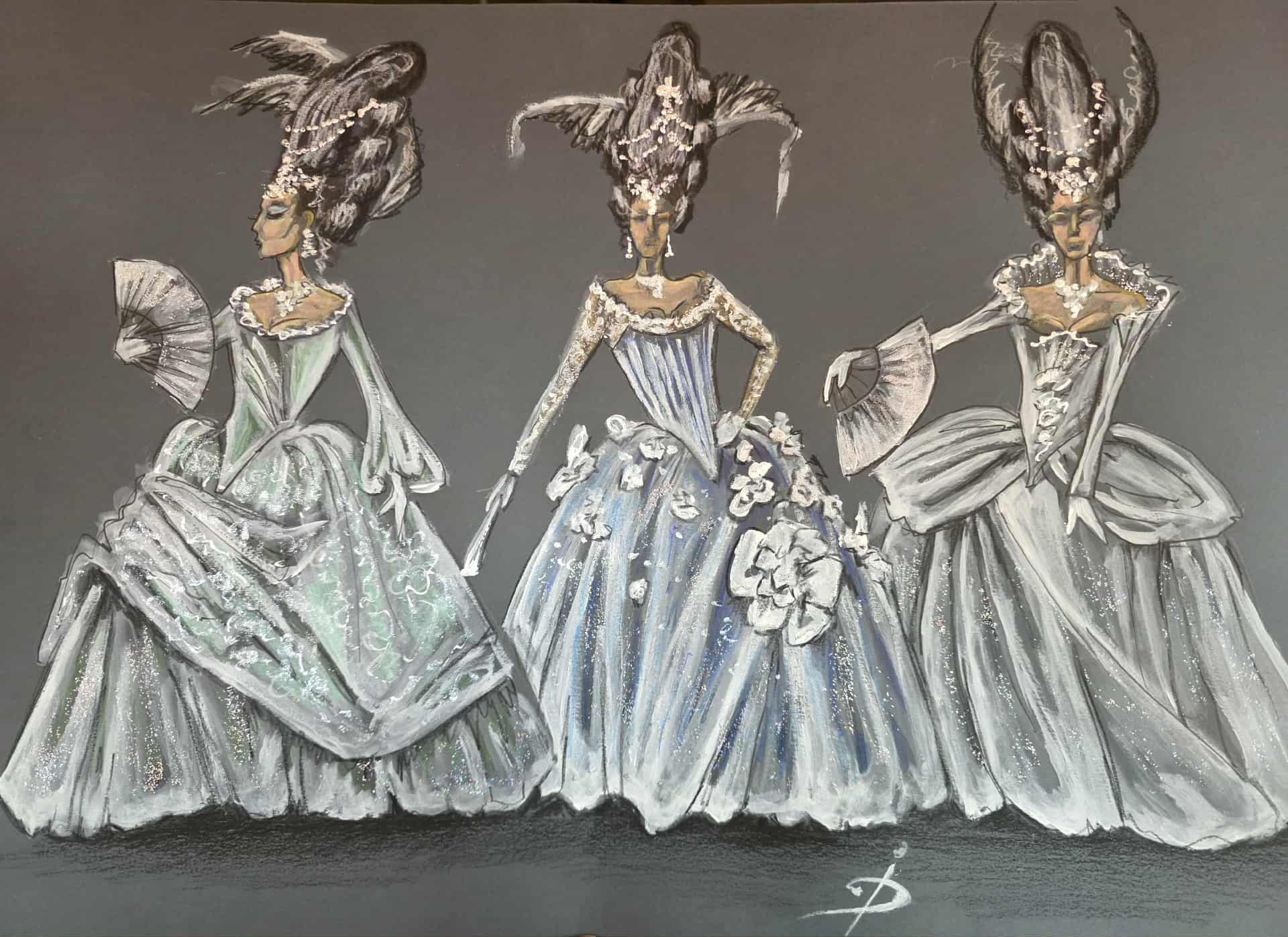 Снимките са от скиците на Денис Иванов на костюмите в „Андре Шение“