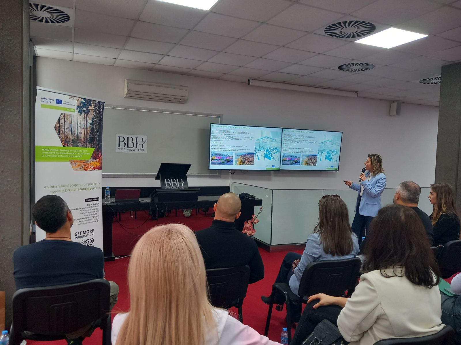 Пред събралите се тя представи резултатни практики в испанския град Матаро, област Каталуния, който е сред партньорите на Община Стара Загора по TEXAD. Специалисти от общината и Тракийския университет го посетиха в края на октомври 2025 г.