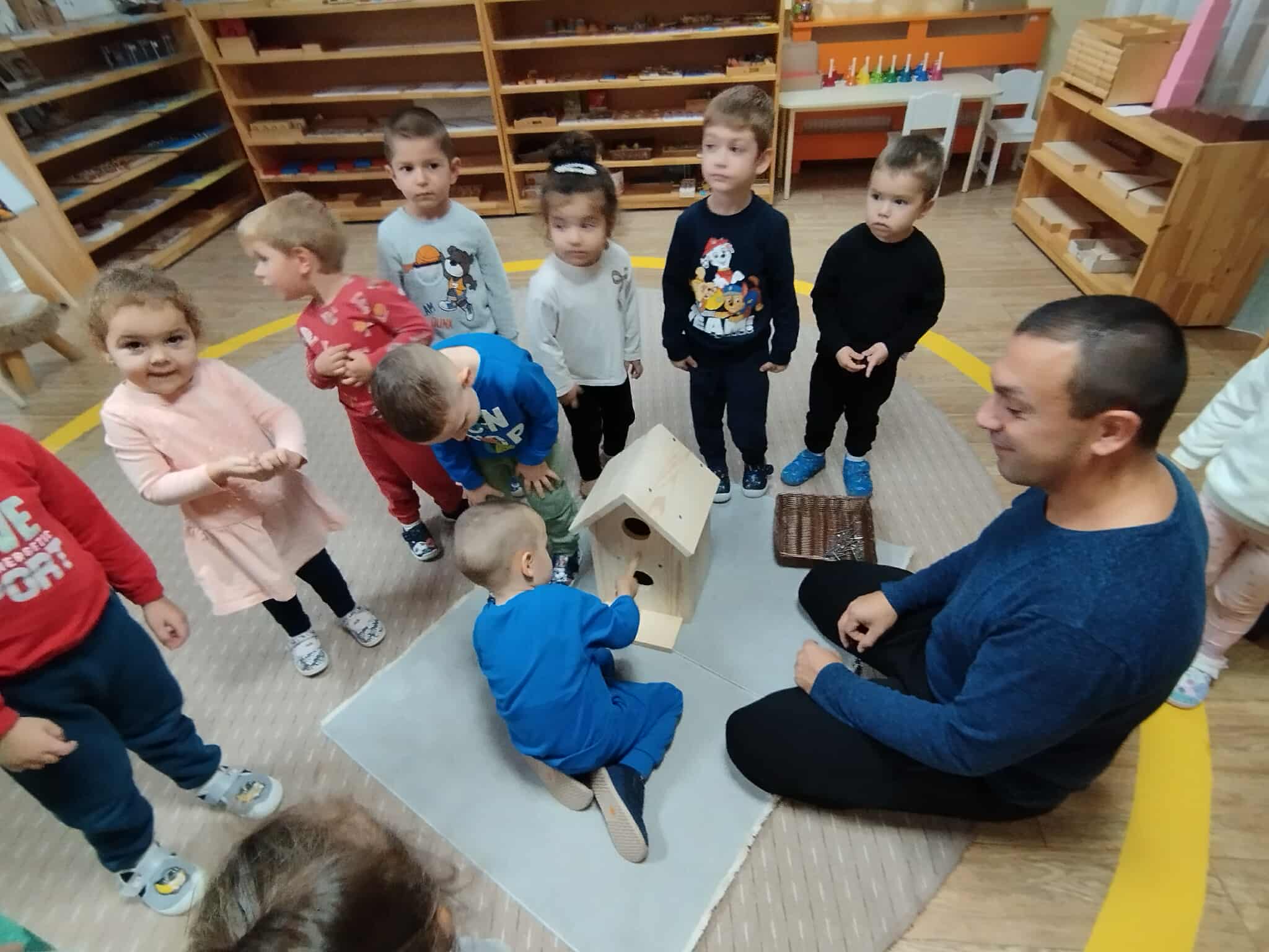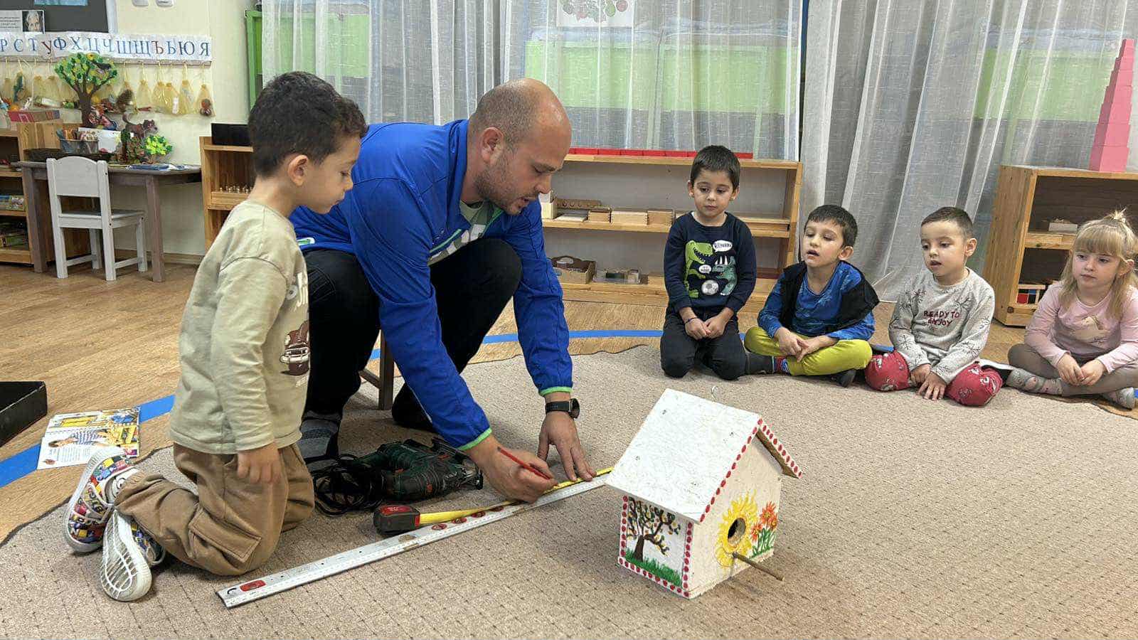 В дух на взаимност и позитивни емоции бяха реализирани множество активности, които събраха заедно бащи и деца. В Първа Монтесори група „Зайо“ деца и бащи заедно: – направиха дървена къщичка за птички, която ще поставят в двора на детската градина; – играха и се радваха на интересни спортни игри; – четоха Приказки за таласъмчета.