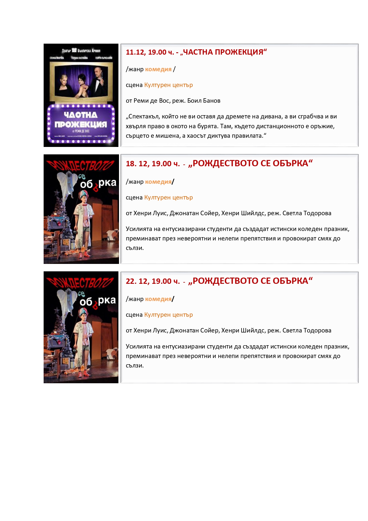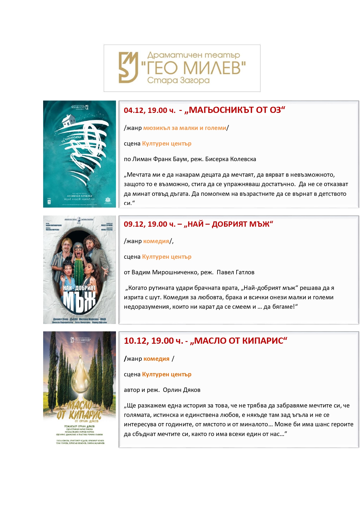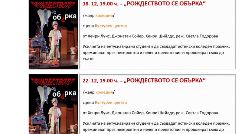 Програма на Драматичен театър „Гео Милев“ за месец декември