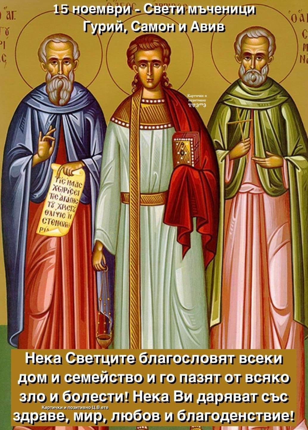 На 15-ти ноември Светата Православна църква почита Свети мъченици Гурий, Самон и Авив! Нека има здраве, мир, любов и благоденствие във всеки дом!