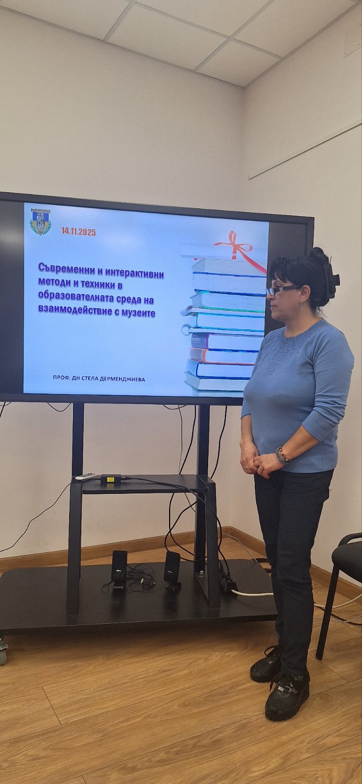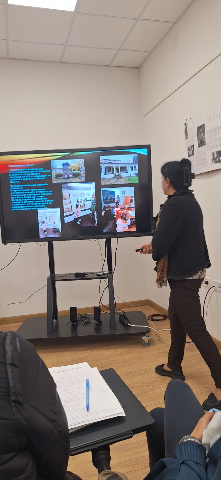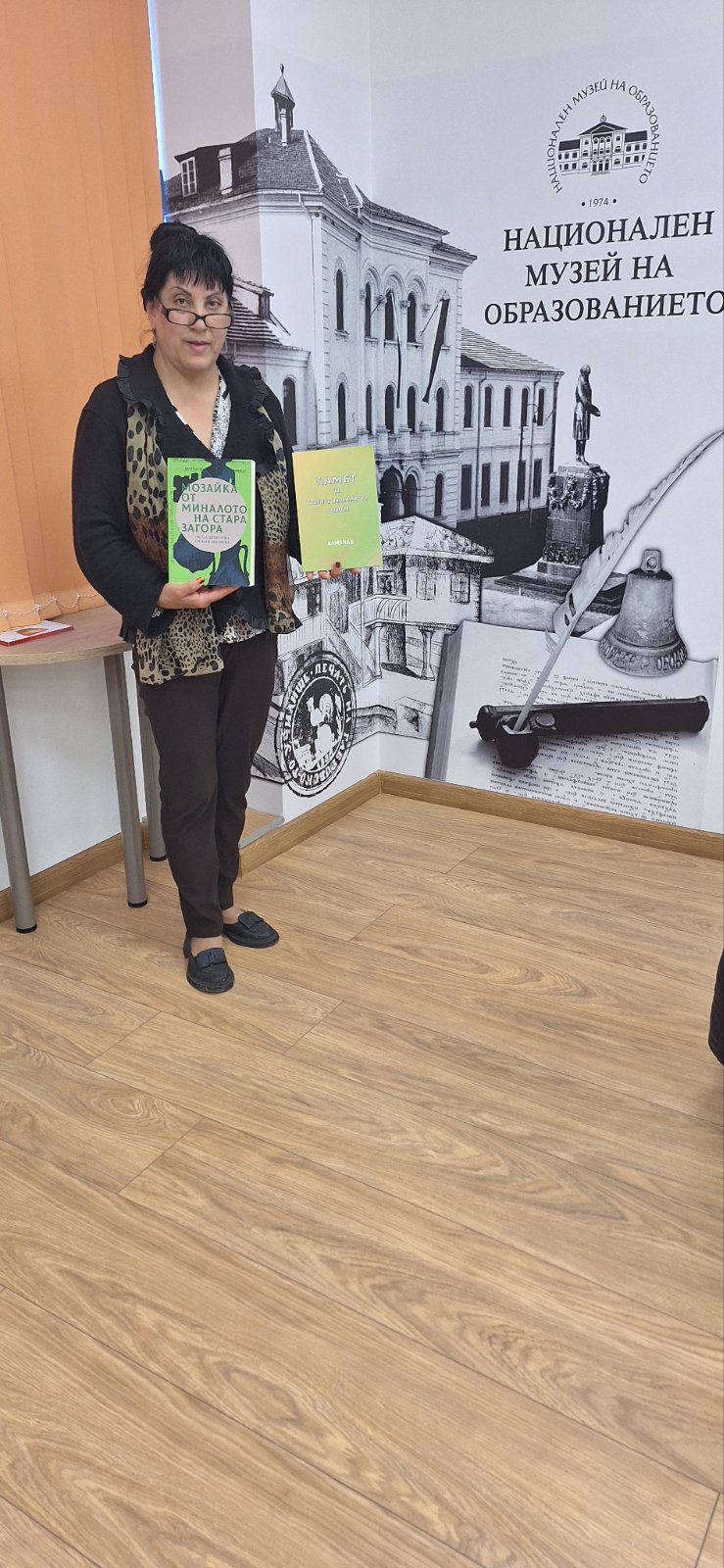 В подготовката на представената от Донка Славова презентация „Чрез музеите – по-близо до бита и нравите на предците ни“ участваха учителите в детската градина Р.Жекова и М.Сандева и помощник-учителите Д.Иванова и Д.Славова. Във връзка с приобщаването на децата от Детска градина №55 „Незабравка“, чийто майчин език е различен от българския, те няколко пъти в неучебно и в учебно време, със съгласието на родители си, са извеждани от детската градина и от селото и въвеждани в реална обстановка в музеите, за да могат точно, ясно и реално да се запознаят с различните видове музеи и с техните експонати. Директорът Донка Стоилова освен че разказа за всички музеи в Стара Загора в своята презентация, но представи и интересни брошури и материали за тях. Запозна аудиторията и с двете нови книги, на чието представяне присъства лично, а именно – второто издание на книгата „Мозайка от миналото на Стара Загора“ с автори проф.Светла Димитрова /директор на Музей ЕТЪРА/ и Снежана Маринова /дългогодишен директор на Регионална библиотека „Захарий Княжески“. Другата представена книга бе „Памет за старите заралийски родове“, издадена по инициатива на Иванка Сотирова, Обществен посредник на Стара Загора, Георги Туртуриков, заместник на Обществения посредник и младите омбудсмани на Стара Загора.