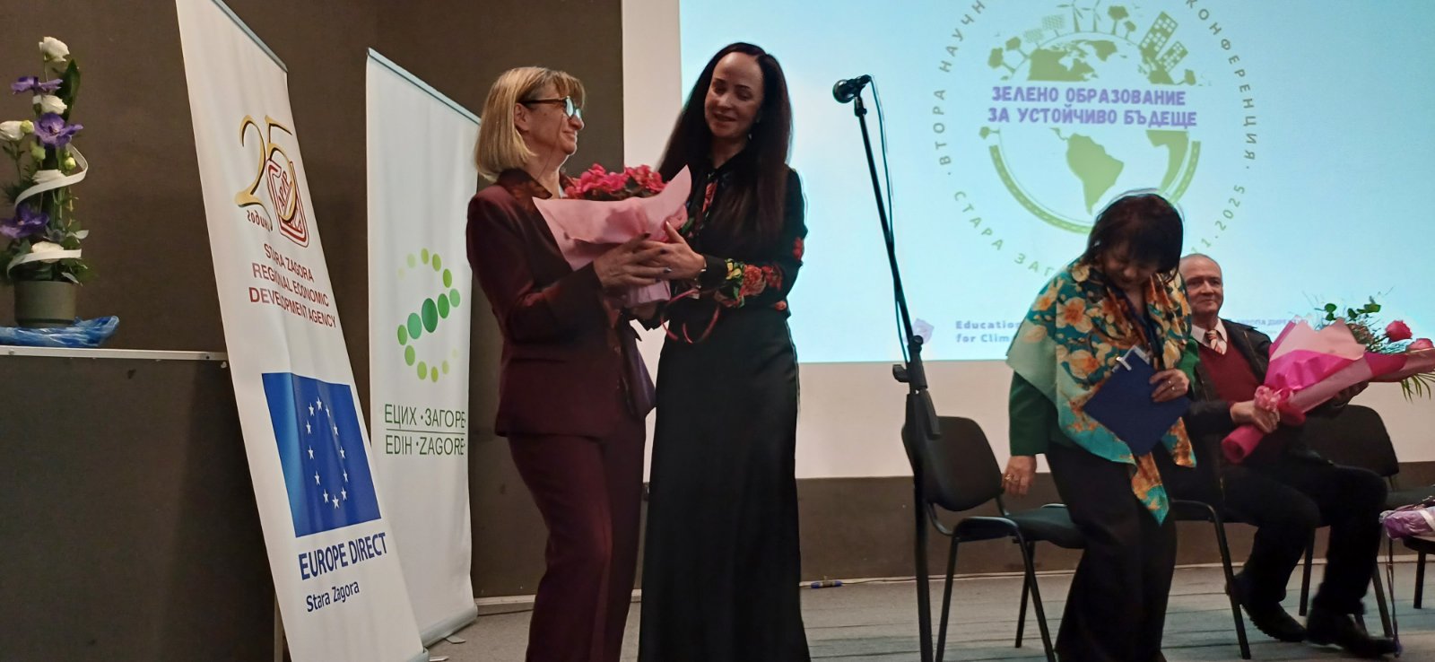 Станимира Димитрова акцентира и върху значението на партньорството между образователните институции и местната власт. Тя подчерта, че Община Стара Загора последователно подкрепя инициативи, свързани с устойчивото развитие, и изрази увереност, че сътрудничеството с институциите  в лицето на Агенцията за регионално икономическо  развитие  и нейния изпълнителен директор  ще  продължи да се задълбочава. В знак на признателност бяха поднесени цветя на Румяна Грозева и д-р Янка Такева за техния дългогодишен принос и всеотдайност.