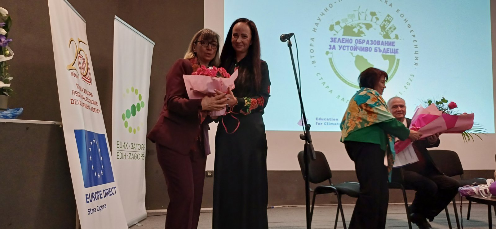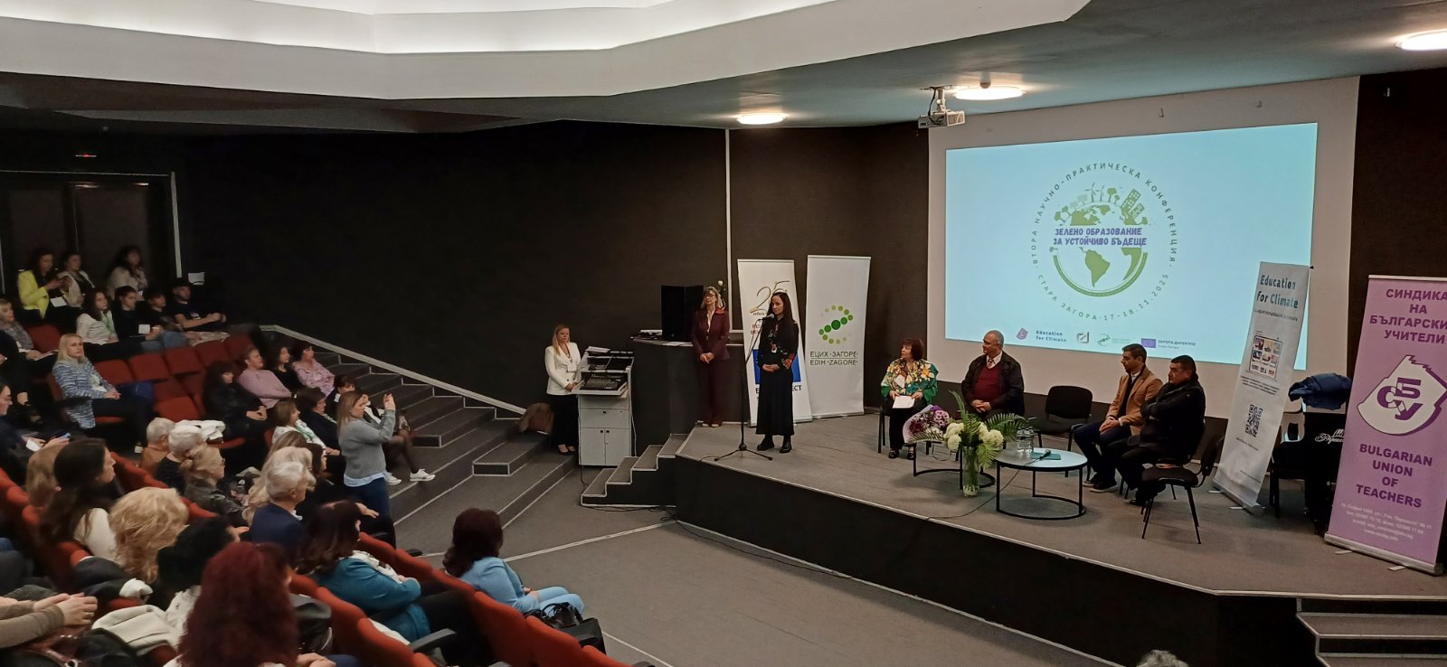 Днес в Стара Загора бе даден старт на  Втората научна конференция, посветена на екологичното образование и необходимостта от устойчиви решения в света на нарастващите климатични промени.  Събитието събра учители, директори на образователни институции, експерти и партньорски организации. Всички те обединени от обща кауза  изграждане на активна екологична култура сред подрастващите. Община Стара Загора бе представена от Станимира Димитрова – началник на отдел „Образование и младежки дейности“ Сред официалните гости бяха още заместник-областният управител  Левент Палов, изпълнителният директор на Центъра за развитие на човешките ресурси – „Еразъм+“ Николай Спасов, областният координатор на Синдиката на българските учители Иван Поров, както и неговият председател д-р ик.н. Янка Такева.