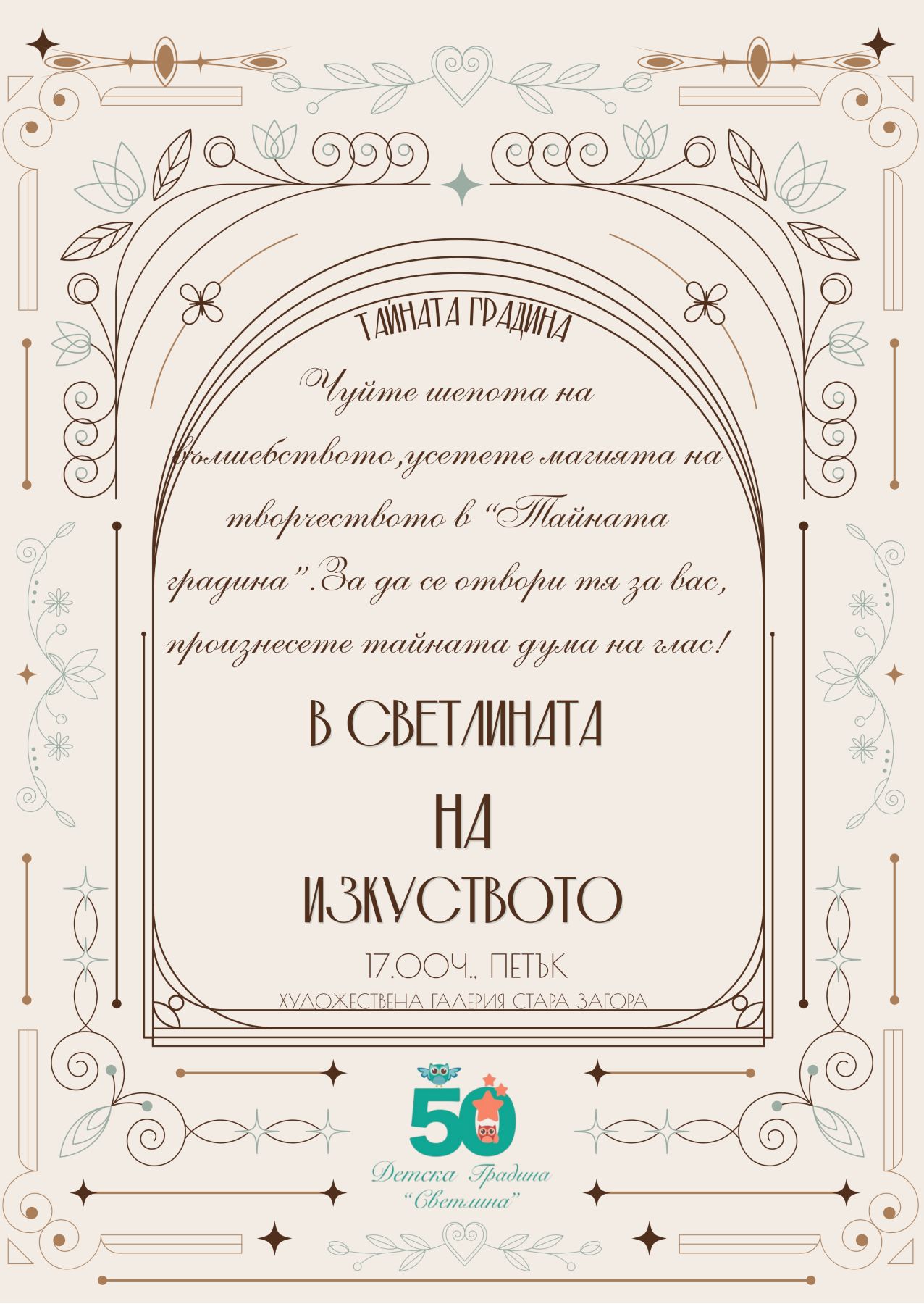 „Тайната градина“ е покана към вътрешното ни аз пространство, в което красотата на природата се преплита с изкуството, за да ни напомни, че мечтите винаги имат корени.Йоанна Димитрова