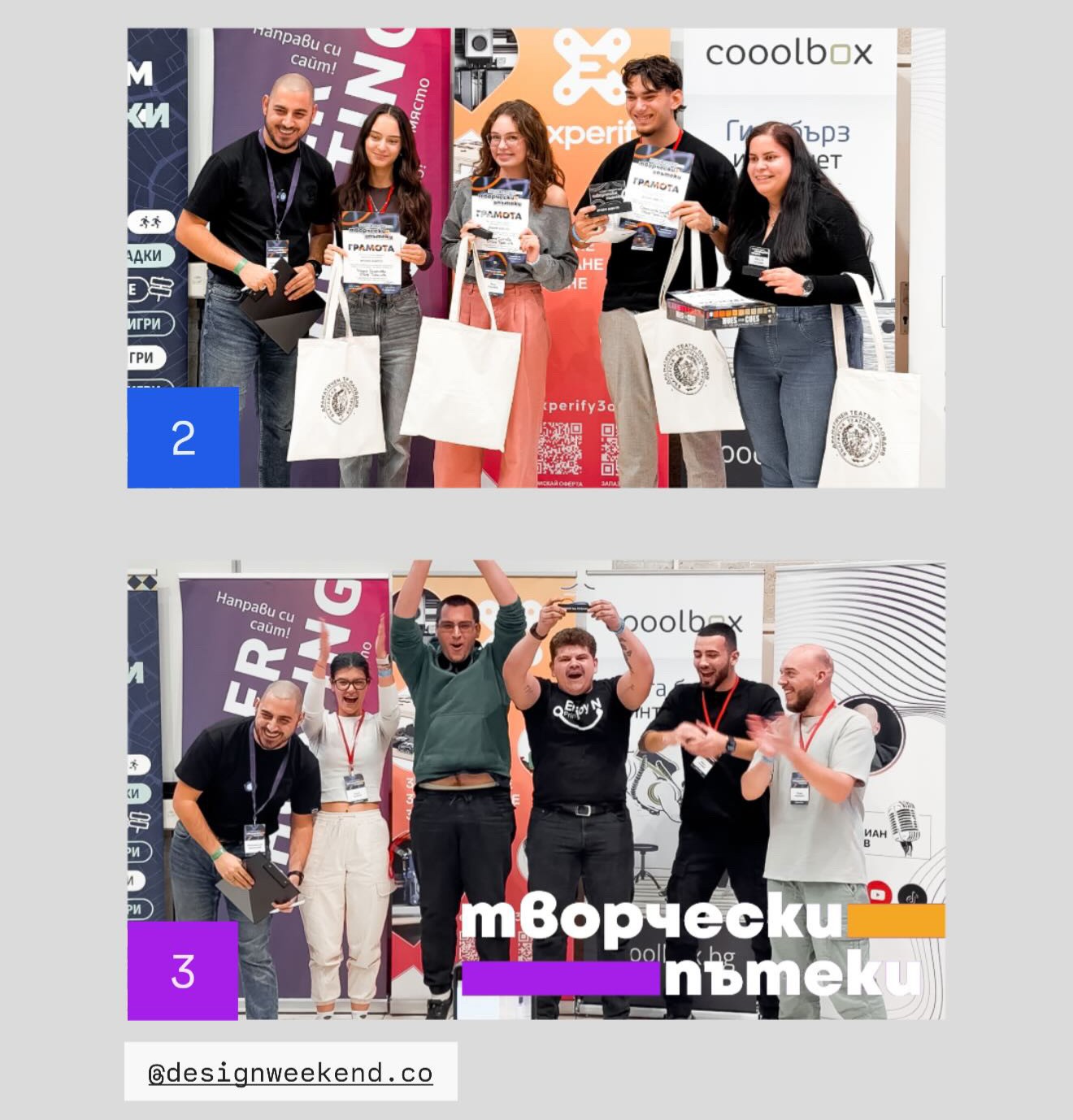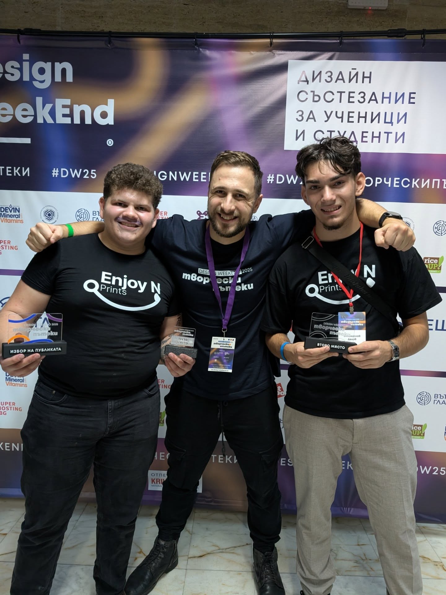 Двама млади дизайнери от Стара Загора – Иван Иванов завършил  Професионална гимназия по компютърни науки и математически анализи „Проф. Минко Балкански“ (18 г.) и Станислав Делев СУ „Иван Вазов“ (17 г.) – постигнаха впечатляващ успех на националното състезание Design Weekend 2025, провело се в Пловдив. Иван завоюва трето място и наградата на публиката, а Станислав спечели второ място, като само една точка го делеше от първото.