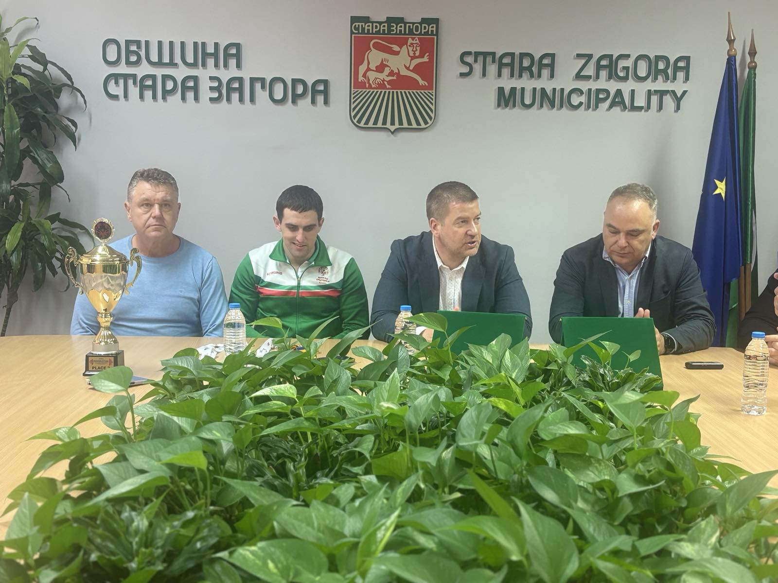 В зала 203 на Община Стара Загора се събраха треньори, спортни специалисти и представители на местните медии, за да уважат успеха на младия атлет. Сред присъстващите бяха ръководителят на отдел „Спортни дейности“ Петко Крумов треньорите Евгени Танев и Стоян Стоянов (дядо на състезателя).