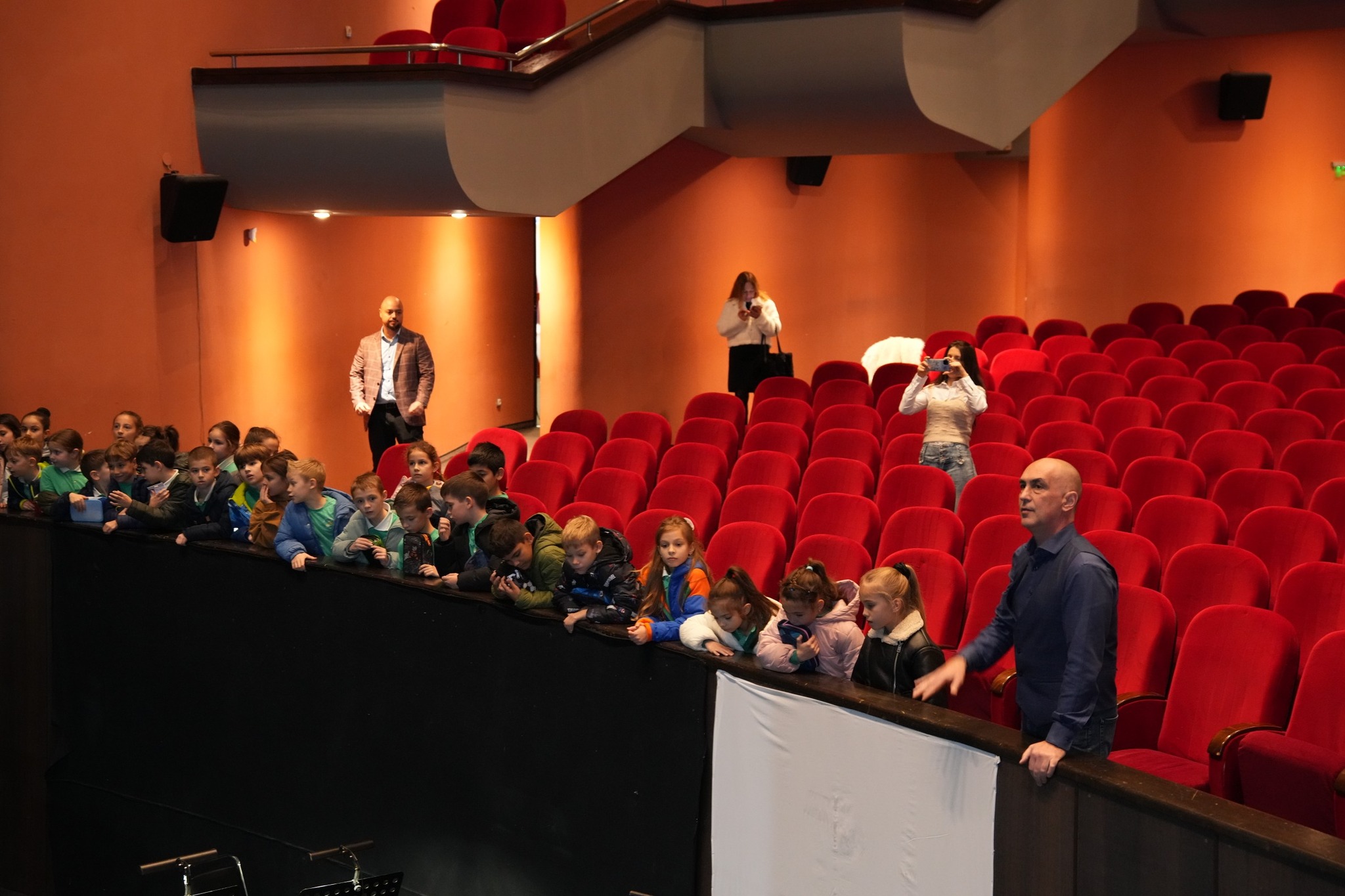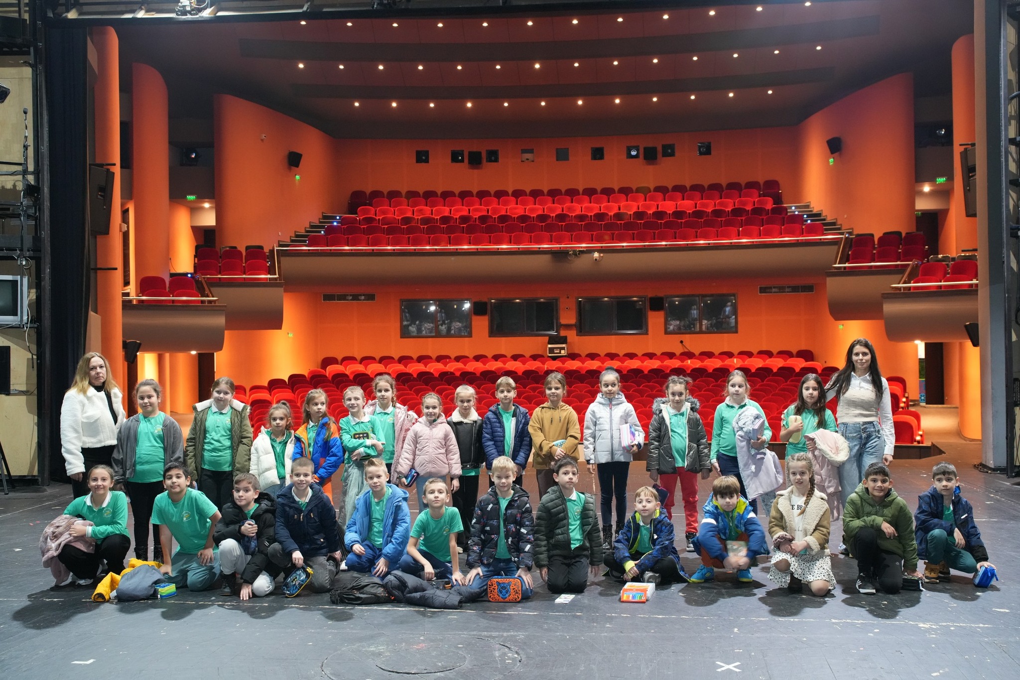 На сцената второкласниците слушаха увлекателни истории, разказани от Георги Митев – маркетинг директор на Държавна опера – Стара Загора, който запозна децата с любопитни факти от дългогодишната история на културната институция.
