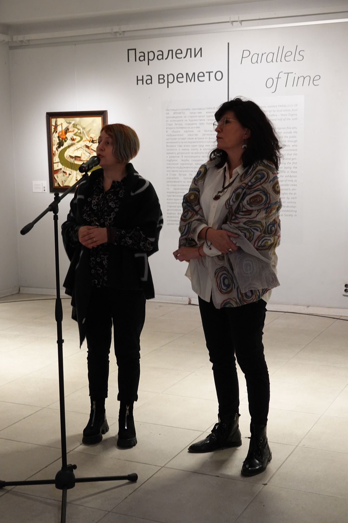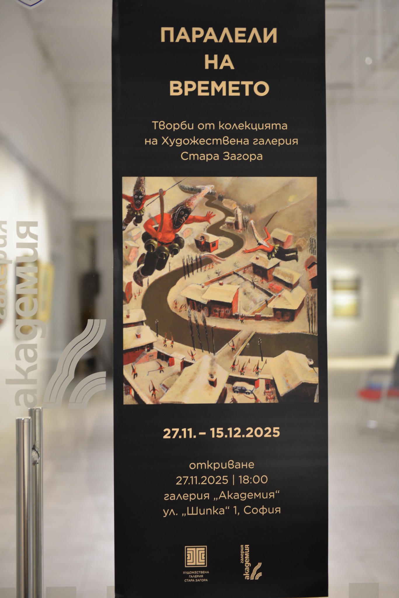 Художествена галерия – Стара Загора представи изложба „Паралели на времето“ в галерия „Академия“ – НХА, София. Официалното представяне на експозицията беше водено от зам.-ректора на НХА проф. д-р Здравка Василева и директора на Старозагорската художествена галерия д-р Катя Тинева-Гюрковска. Тяхното участие подчерта значимостта на инициативата и стремежа за активен обмен между институциите.