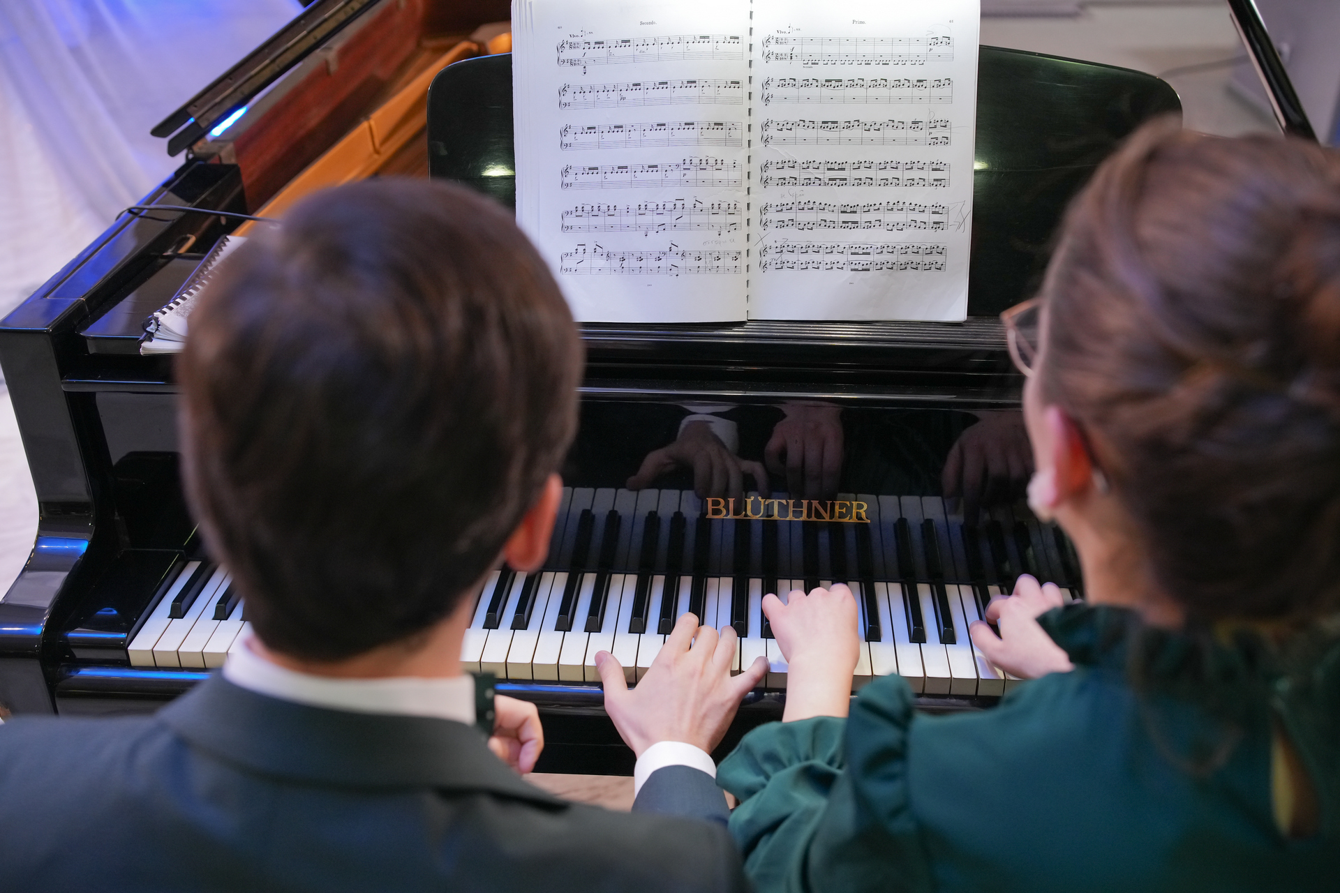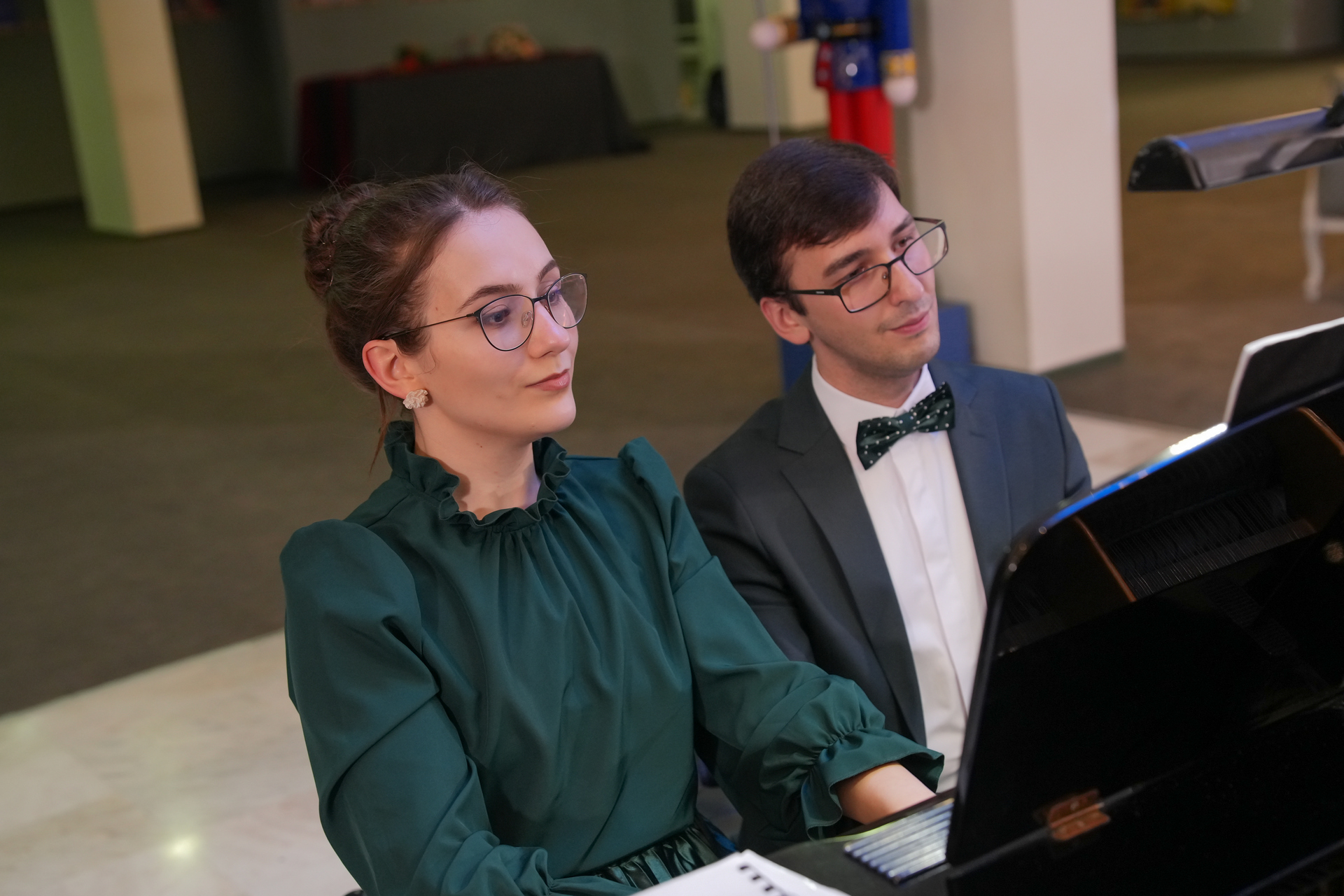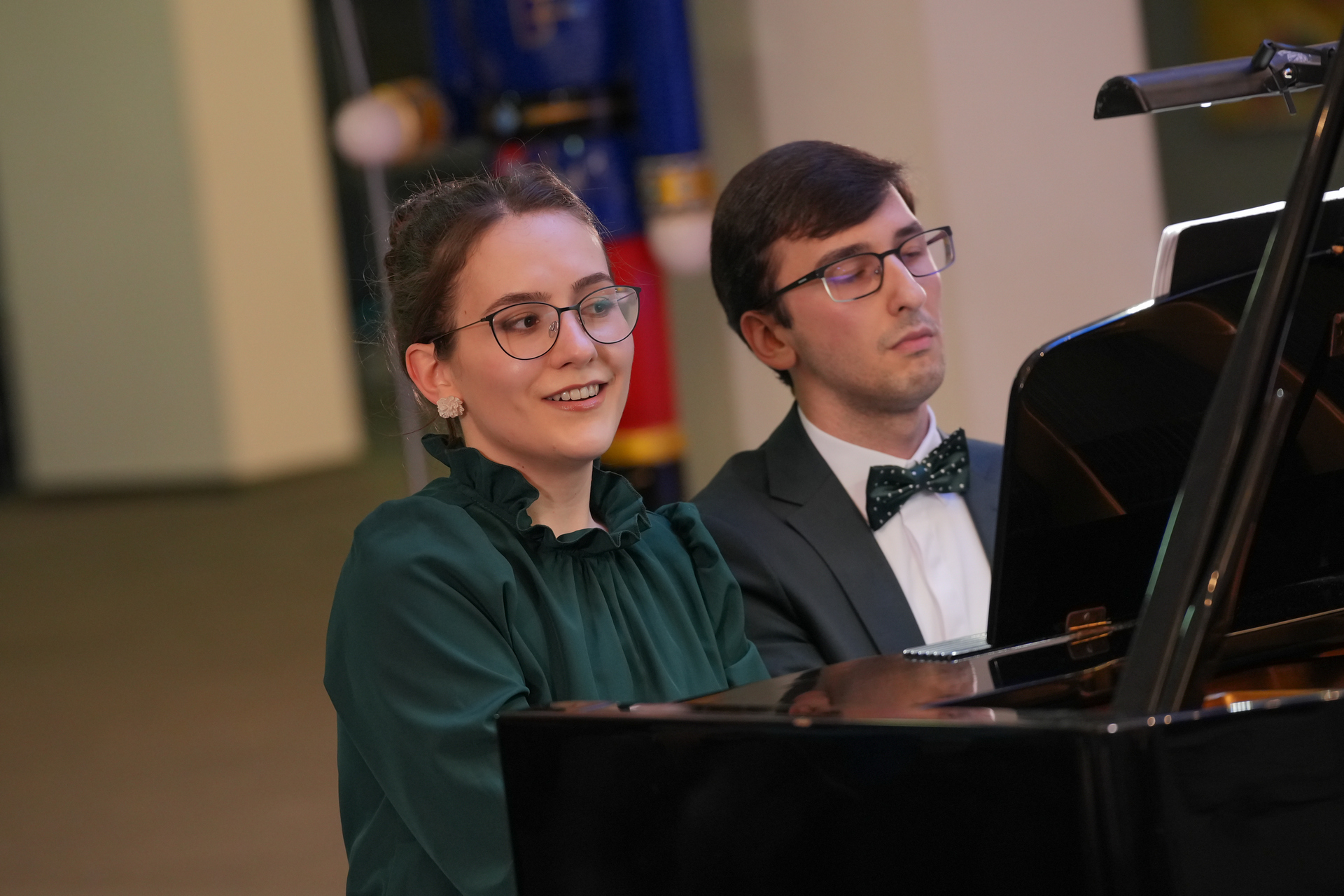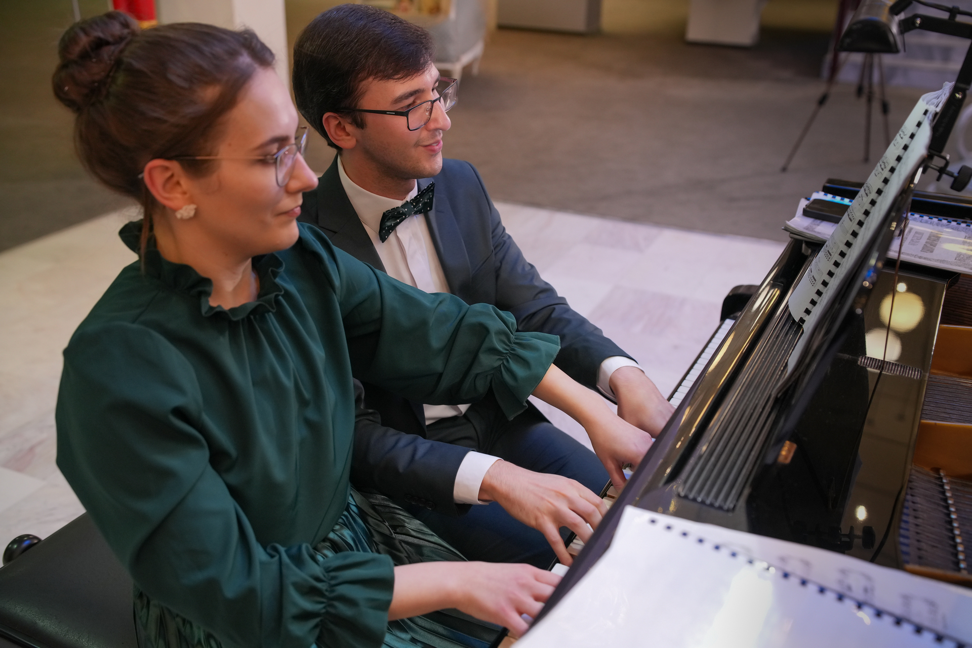 Събота вечер /13 декември 2025 г./ във фоайето на Операта омагьосано слушахме „Приказки за четири ръце“ –  концерт на Клавирно дуо Стефания Русева и Симон Павлов. Коледа е, и всеки очаква под елхата своя подарък. Един предпочита обемисти подаръци, друг – малки, но особено ценни, безценни. Такъв формат подарък за всички ни беше този концерт – малък, скъпоценен, като от красива кадифена кутийка.