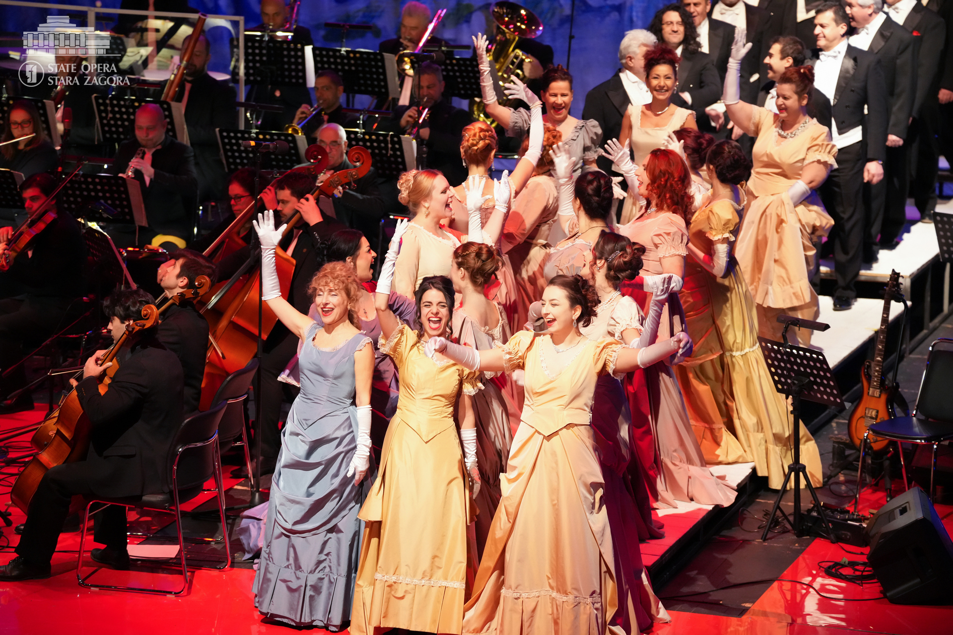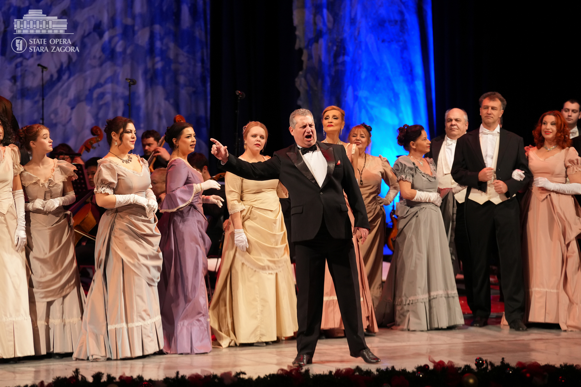 С чаша шампанско в ръка на сцената излязоха всички солисти и вдигнаха наздравицата от оперетата „Прилепът“ на Йохан Щраус- син.