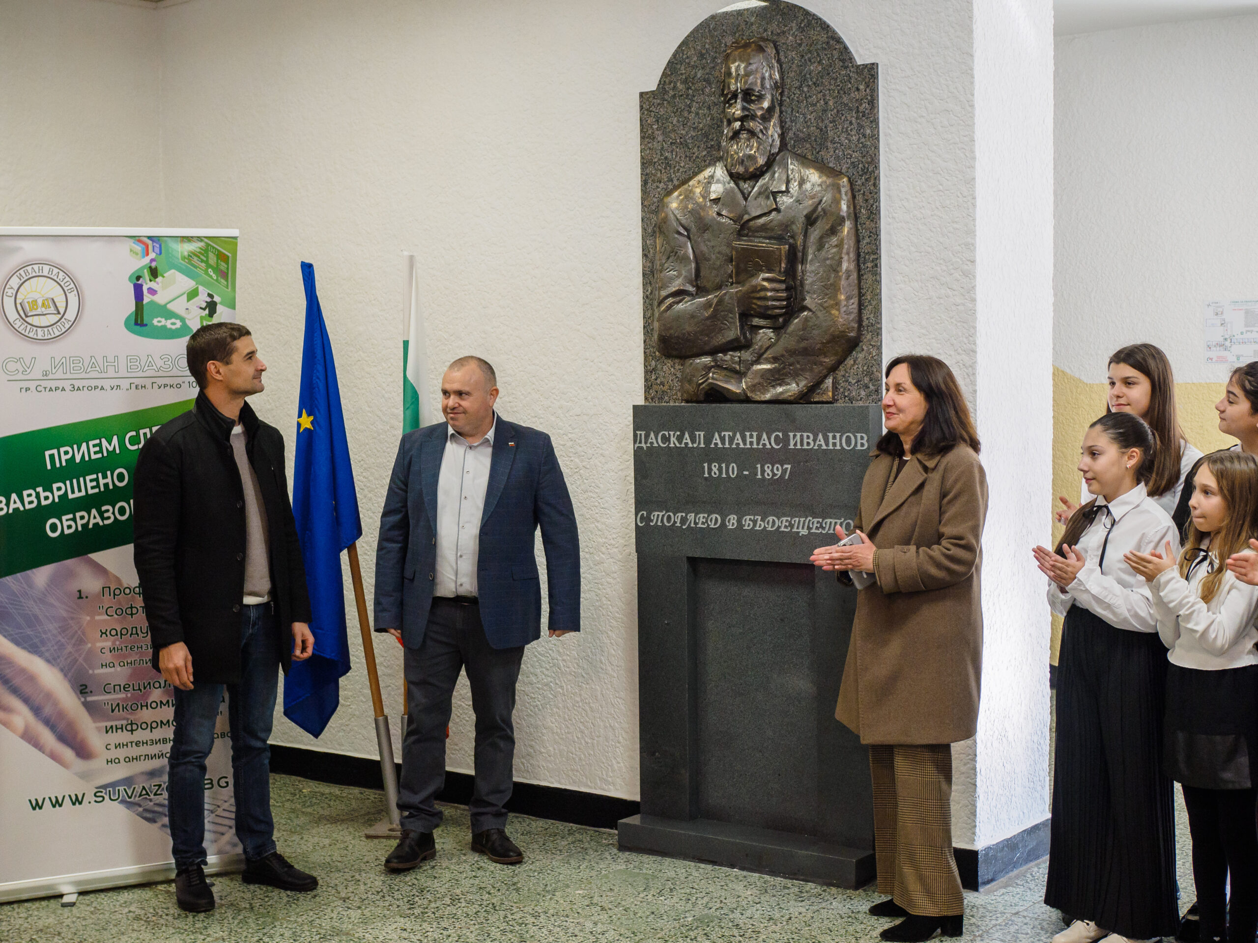Барелеф на един от най-светлите възрожденци на Стара Загора – създателят на светското образование даскал Атанас Иванов, бе открит днес в СУ „Иван Вазов“. Барелефът е дело на старозагорския скулптор Наско Настев, който бе гост на тържеството. Церемонията почетоха и зам.-кметовете на Община Стара Загора Надежда Чакърова („Образование и младежки дейности“) и Милена Желева („Култура и туризъм“), секретарят Николай Диков и общественият посредник Иванка Сотирова.