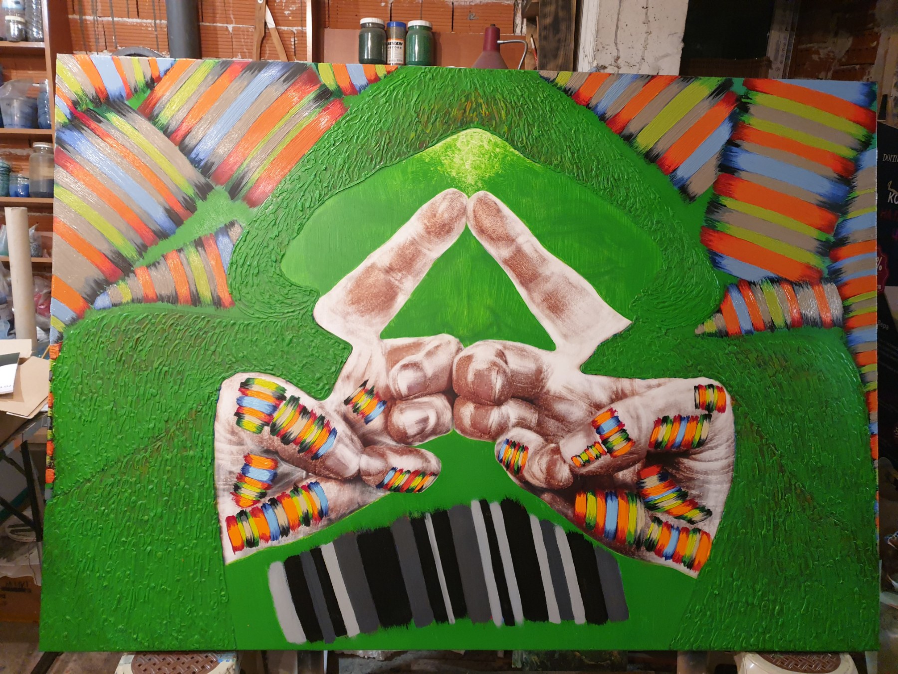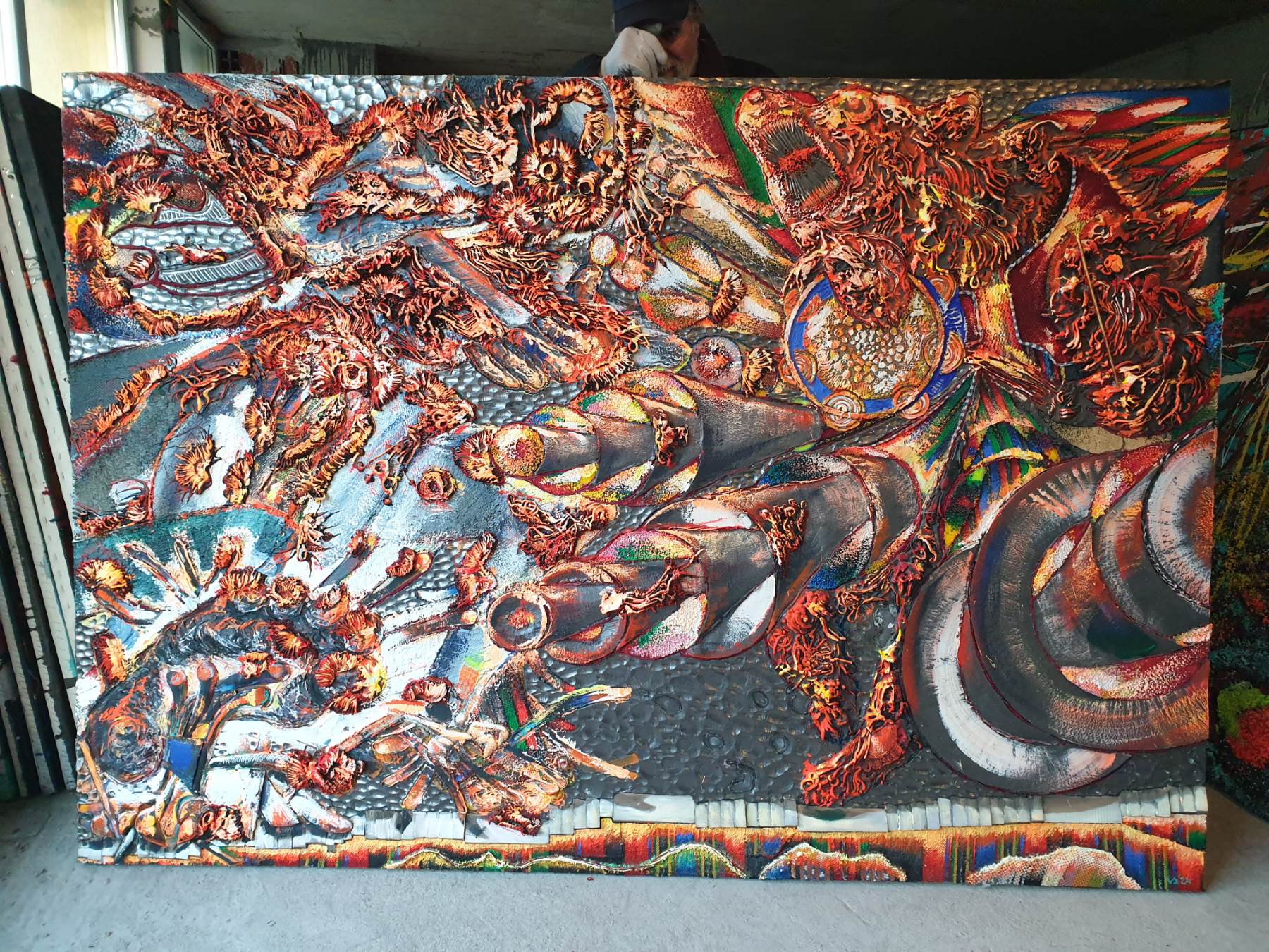 Идеята на голямата ми картина „Анти гравитация“ е, че с български черги съм покрил всичко, което ми лъха на западноевропейския екзистенциализъм, т.е. аз съм го надмогнал с помощта на благородството и философията на лъча български, който идва от Тибет.