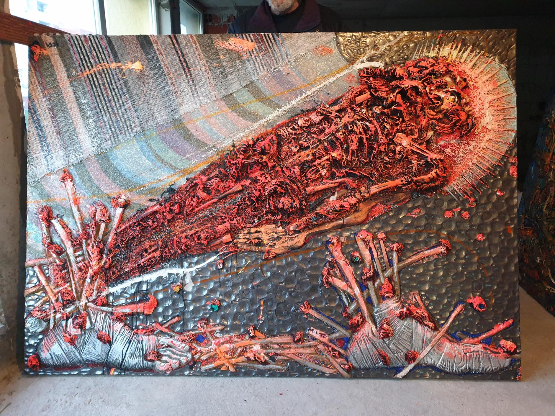 22 работи са, като 23-тата е голяма, мащабна картина с размери 5/3 метра – 15 кв.м. и се казва „Анти гравитация“. Другите са във формат 2/1.40м. Нарекъл съм ги „Странна птица“, „Знаци“, „Вселена от А до Я“, „Животворящи сълзи“, „Летяща подводница“, „Самотен остров“, „Диагонал“… Тук са и двата портрета на Гео Милев и на Пейо Яворов, с които участвах на Балканското квадринале по живопис „Митовете и легендите на моя народ“.