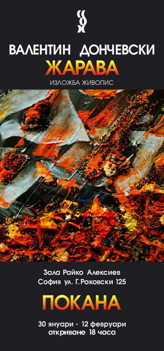 На 30 януари 2026г. от 18:00ч. в изложбена зала „Райко Алексиев“ , София, ул.“Г.Раковски“125 , известният художник Валентин Дончевски ще открие поредната си изложба живопис „Жарава“ . Експозицията ще бъде отворена до 12 февруари т.г.