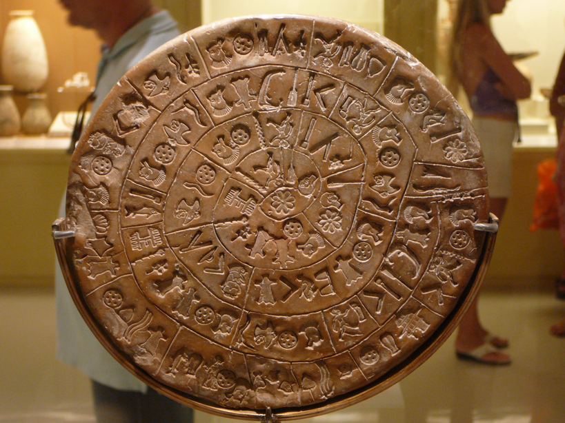 През 1899 г. английският професор Артър Еванс започва археологически разкопки на о.Крит. Тук той открива забележителна цивилизация, в която оживяват легендите за лабиринта и минотавъра. Нарича я Минойска. Малко по-късно, през 1908 г., при разкопки в царския дворец във Фестос, италианският археолог Луиджи Перние попада на уникален диск от добре изпечена глина. Дискът е с неправилна форма, но изпълнен с изкусно врязани пиктографични знаци от двете страни. Смята се, че е направен през второто хилядолетие преди Христа и е първият намерен досега надпис с щамповани знаци. До днес учените напразно се опитват да го разчетат.