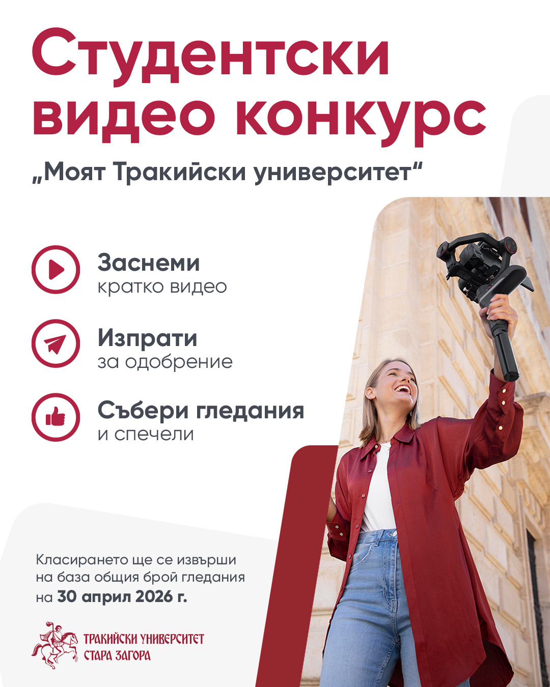 Trakia University is launching the student video competition “My Trakia University”, which gives you the opportunity to tell your story, present your field of study, and share your experiences as part of the University’s academic community.