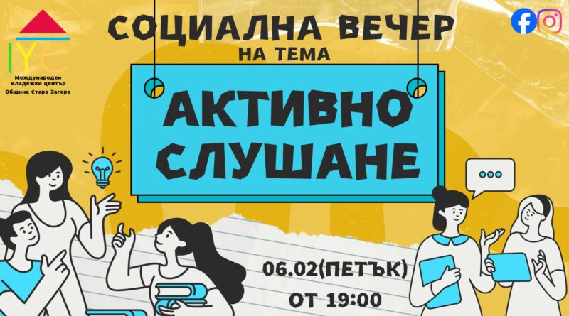 Как да водим по-смислени разговори и да разбираме по-добре хората около нас? Отговори на тези въпроси ще търси социалната вечер на тема „Активно слушане“, която ще събере млади хора в Международен младежки център – Стара Загора.