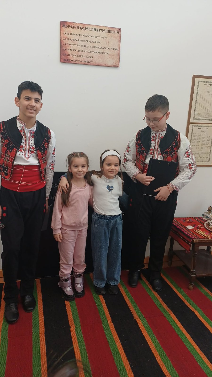 Гостите посетиха специално обособената учебна стая „Старото школо“, която пресъздава атмосферата на традиционното българско килийно училище. Пространството е създадено като активна учебна среда, а не като експозиция, и се използва за провеждане на часове по история и възрожденски теми чрез характерни за епохата методи на обучение.