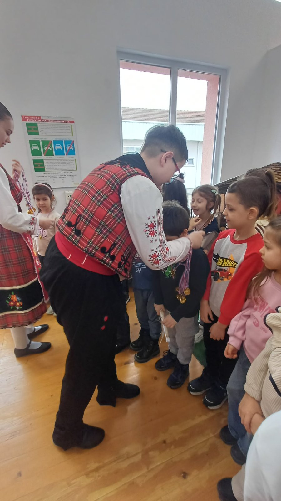 Децата от ДГ № 2 „Радост“ поздравиха своите домакини с музикални изпълнения и стихотворение, а учениците от ОУ „Кольо Ганчев“ представиха беседа на тема „Възрожденското село“, както и роботизирана тренировка по безопасност на движението.