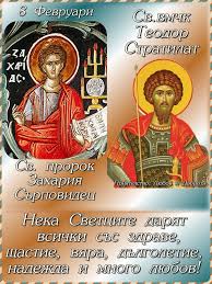 На 8 февруари православните християни почитат великомъченика Теодор Стратилат и Св. прор. Захария Сърповидец. В православния календар това е 17 Неделя подир Въздвижение – на Блудния син.