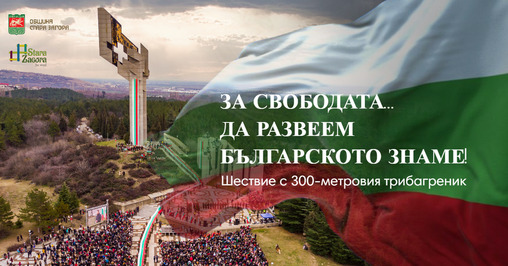 11.00 ч. „ЗА СВОБОДАТА… ДА РАЗВЕЕМ БЪЛГАРСКОТО ЗНАМЕ!“ – паметно шествие с националния трибагреник до Мемориалния комплекс „Бранителите на Стара Загора“