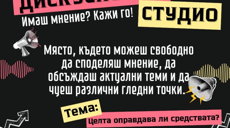 Дискусионно студио в Стара Загора поставя въпроса „Целта оправдава ли средствата?“