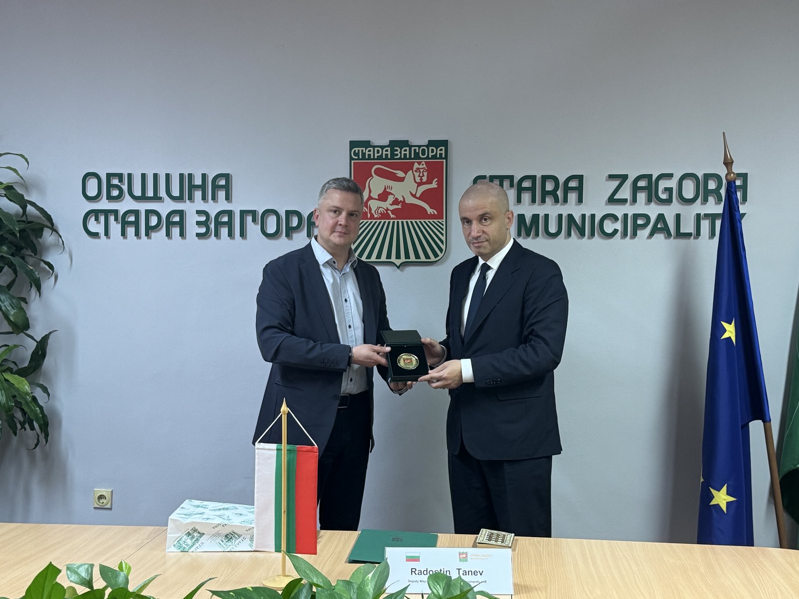 Като знак на уважение заместник-кметът Радостин Танев подари на гостите тематични сувенири, свързани с богатата над 8000-годишна история на Стара Загора – символичен жест, подчертаващ стремежа към дългосрочни и ползотворни отношения между двете страни.