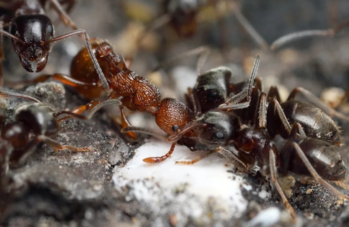Смесете сода с пудра захар (1:1) и поставете на пътечките на мравките. Те отнасят сместа в мравуняка, където содата причинява вътрешни реакции. Този метод е ефективен при системна употреба.