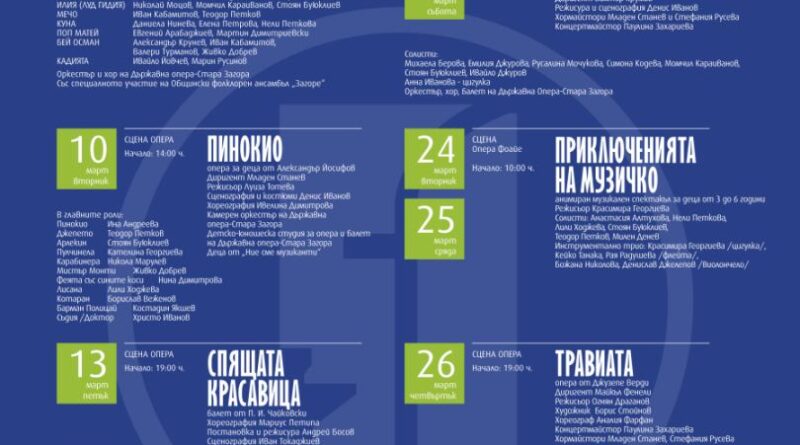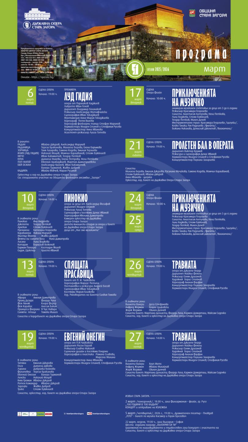 Програма за месец МАРТ на Държавна опера-Стара Загора