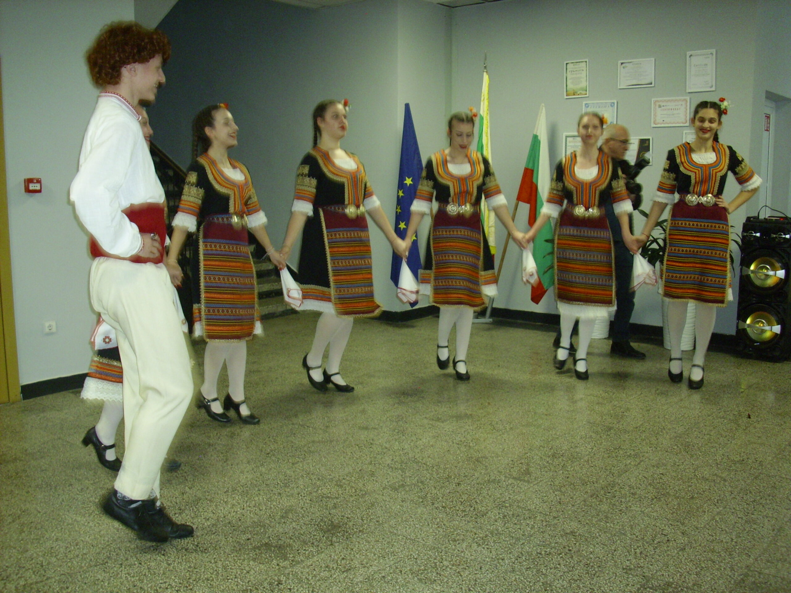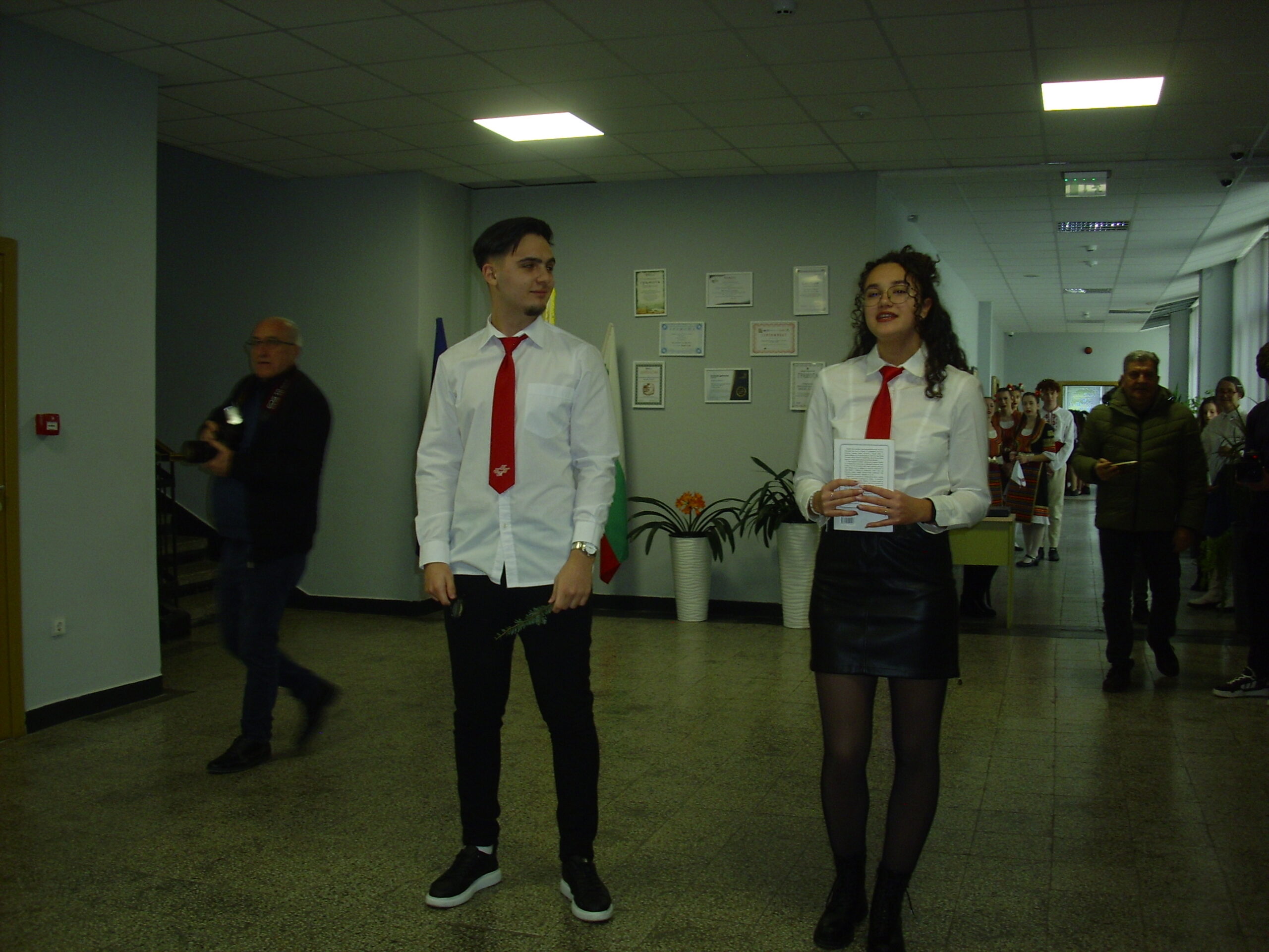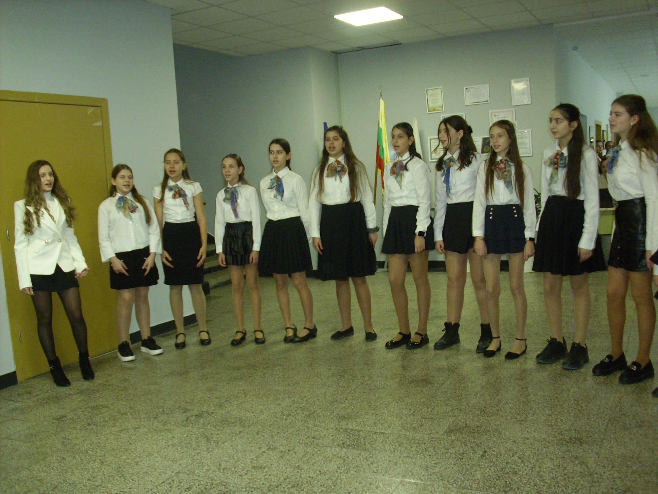 Преди разглеждане на новите пространства и включване в някои от експериментите, беше направено прекрасно въведение към празника. По изключително интелигентен, елегантен, емоционален и вдъхновяващ сценарии, дело на литераторката г-жа Екатерина Мирчева, гостите се потопиха в аурата на това училище, усетиха гордостта и полета на мечтите на учители и ученици. Вокалната група „Пеещи звънчета“ с художествен ръководител г-жа Деница Желязкова изпълни химна на гимназията „Горди наследници“, а танцовият състав представи шопско надиграване.
