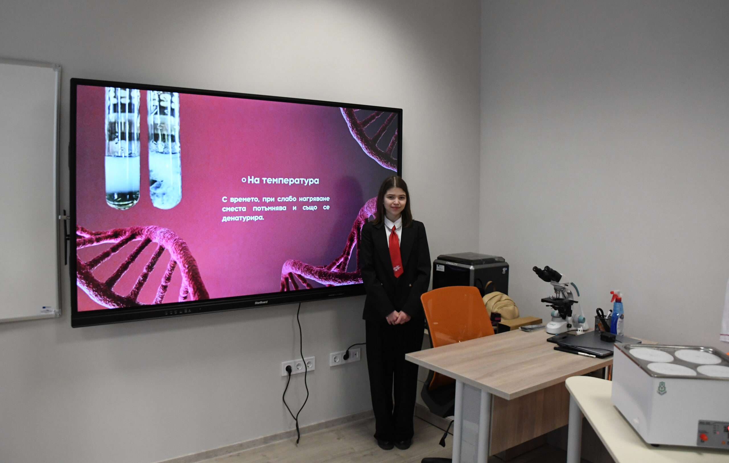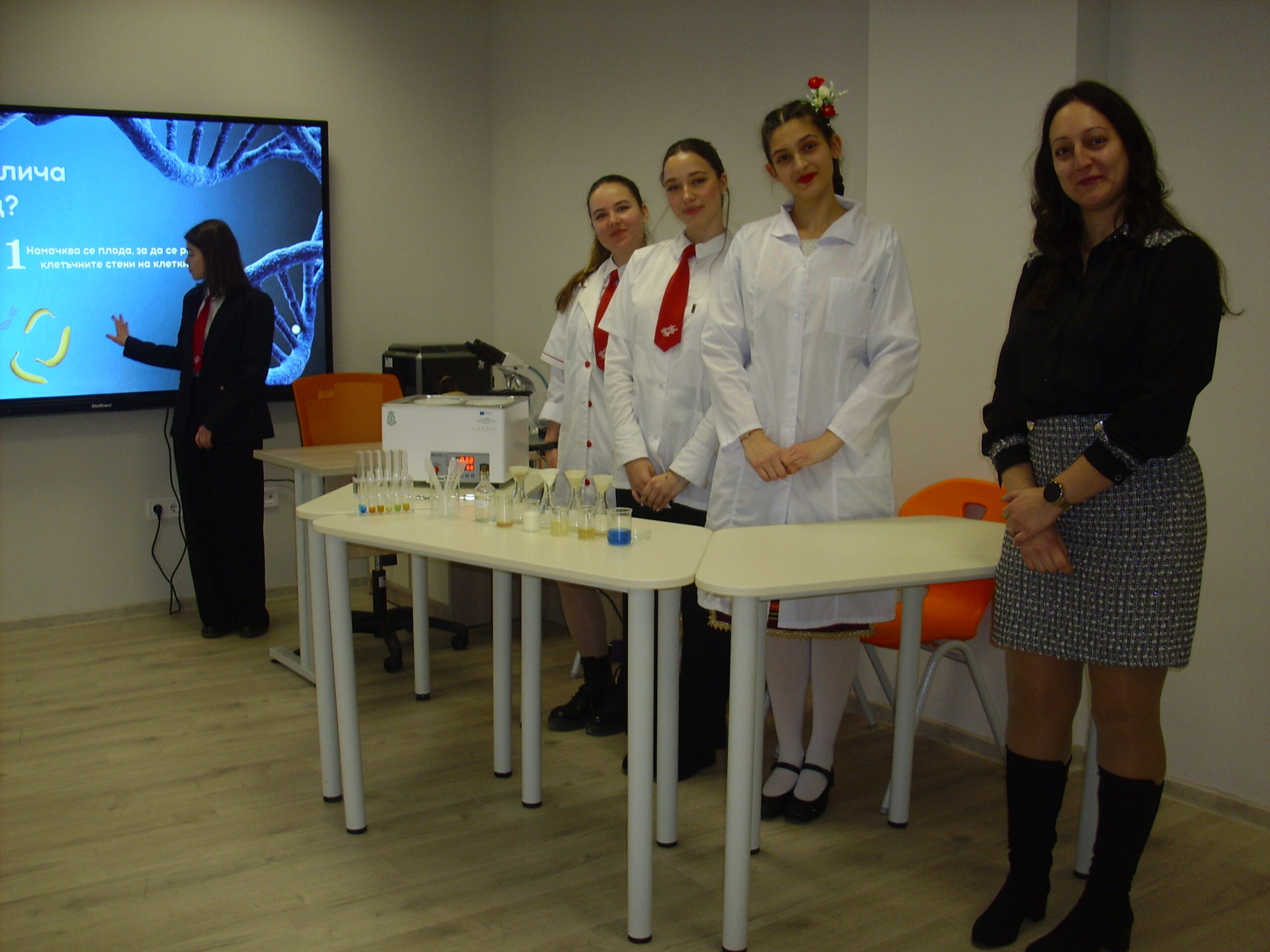 По химия имат проекти по които правят серия кремове за ръце, лице и тяло. Тук включваме да има краен продукт, което много пали учениците, защото виждат, че има ефект от това, което учат. Тук са интегрирани и трите науки – физика, химия и биология…Разработиха дезинфектант, който изработват в химичната лаборатория, а по биология под микроскоп проверяват – как и доколко предпазва от различни видове бактерии и вируси“.