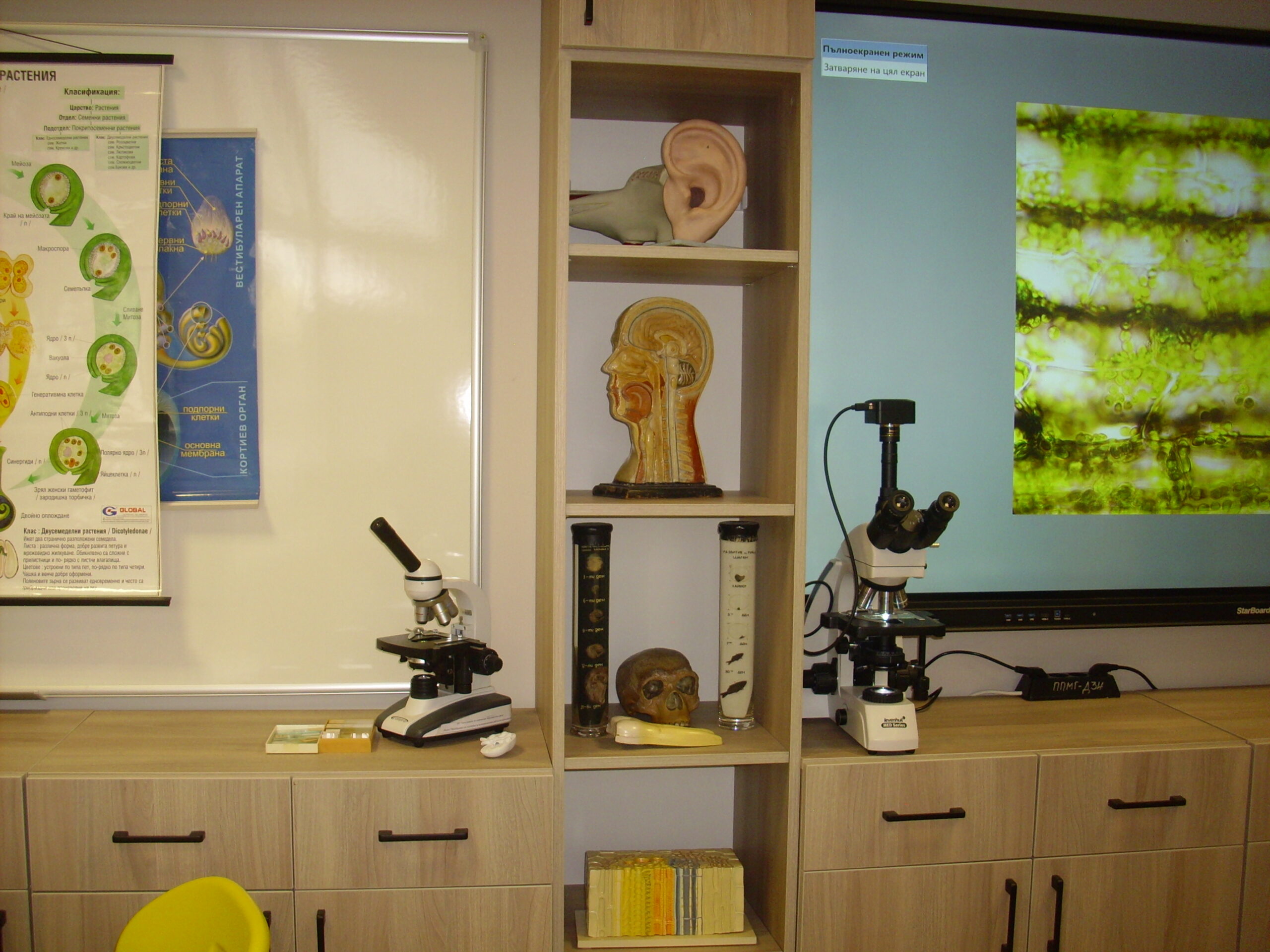 Кабинетите са разположени на втория етаж. Двете пространства имат обща връзка. Идеята е да създадем хармония между наука, изкуства, езици, които да дадат на учениците нов поглед към всичко това, което ги заобикаля. Защото само с природни науки без познаване на история, география, езици- не могат да се случват нещата“- сподели г-жа Петрова.