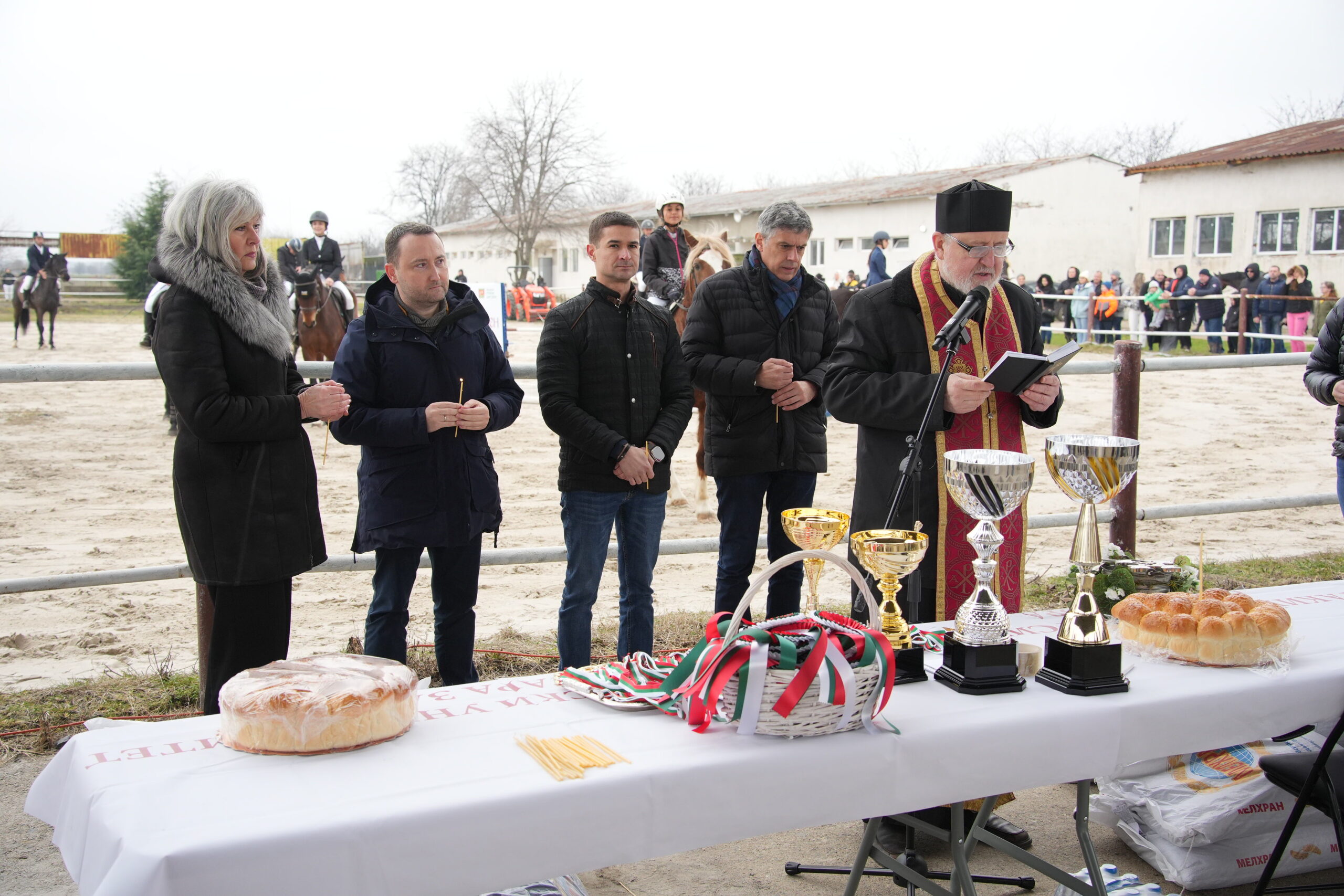 Празникът започна с тържествен водосвет за здраве и благополучие на състезателите и техните коне.