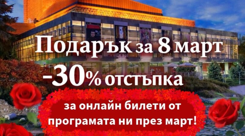По случай Празника на жената ви изненадваме с 30% отстъпка за всички онлайн билети от програмата ни през март.