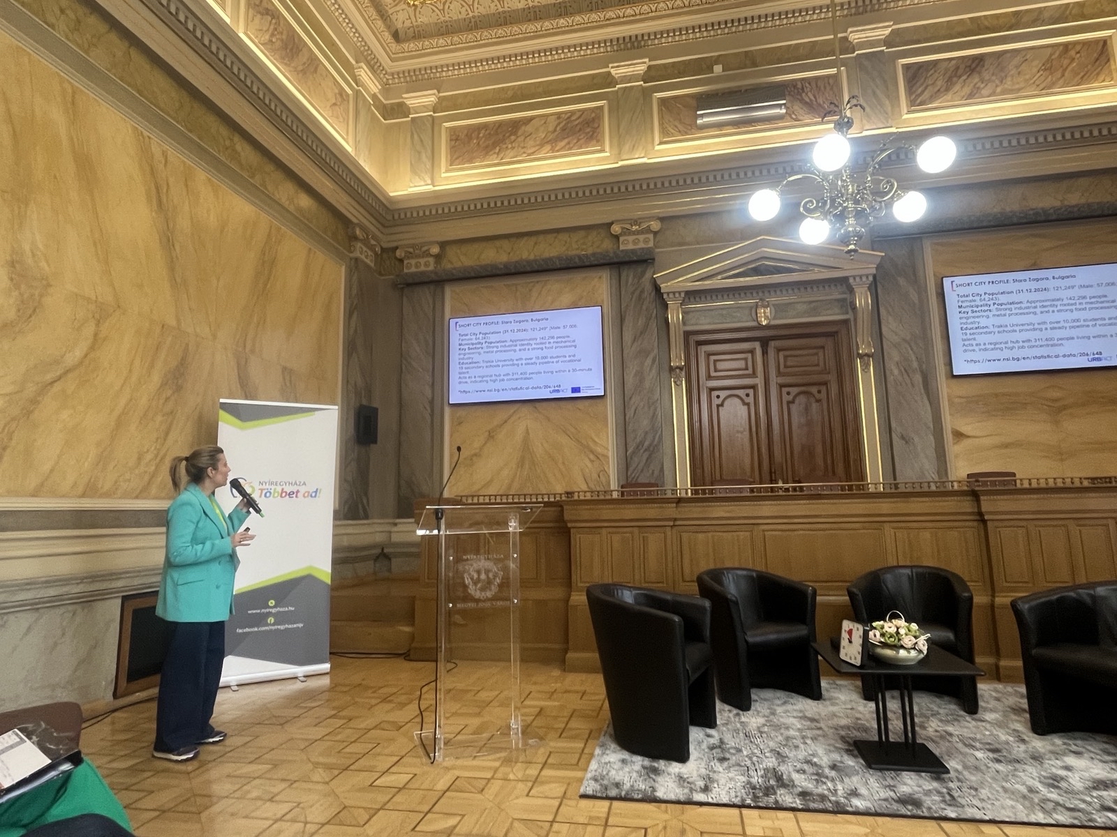 В срещата участваха служители от отдел „Инвестиции, енергийна ефективност и зелен преход“, които представиха основните предизвикателства пред местния пазар на труда и обмениха опит за възможни решения чрез сътрудничество между институции, бизнес и образователни организации. Акцент в програмата беше представянето на добрата практика на Ниредхаза – Местния форум по заетостта, създаден през 2017 г., който обединява близо 40 организации, сред които местната власт, държавни институции, работодатели, синдикати, образователни и граждански организации.