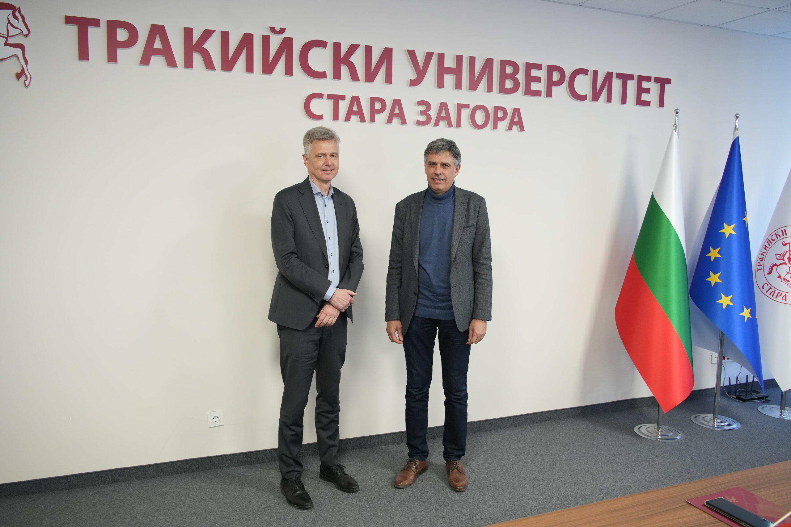 Ръководството на Тракийски университет – Стара Загора проведе среща с Н. Пр. Флеминг Стендер, извънреден и пълномощен посланик на Кралство Дания в Република България. В посещението участва и г-жа Даниела Андерсен – стажант по въпросите на публичната дипломация към Посолството на Дания.